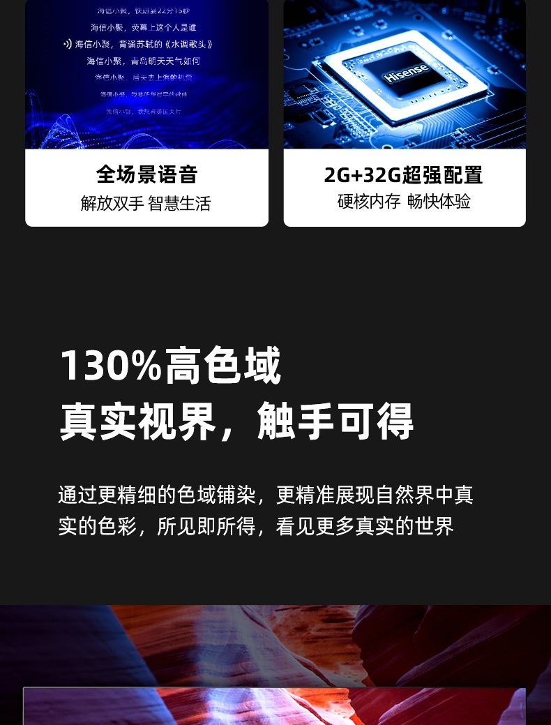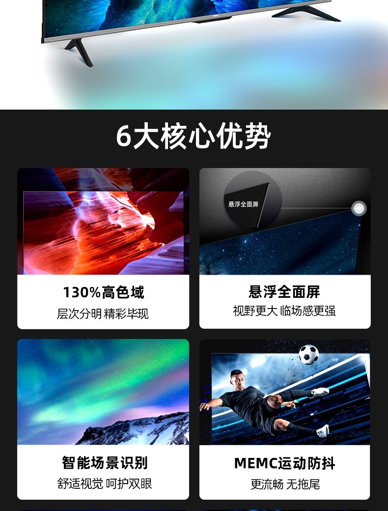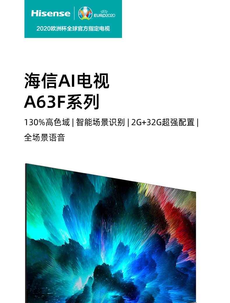 海信(Hisense)55A63F 55英寸MEMC防抖130%色域全场景悬浮全面屏2+32GB电视 枪色