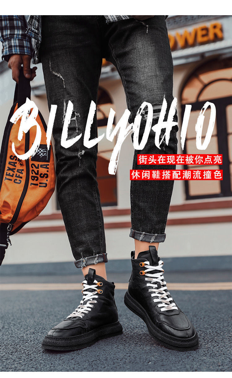 男鞋2020秋冬季新款百搭高帮马丁靴加棉潮流厚底运动休闲板鞋男