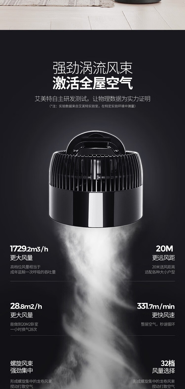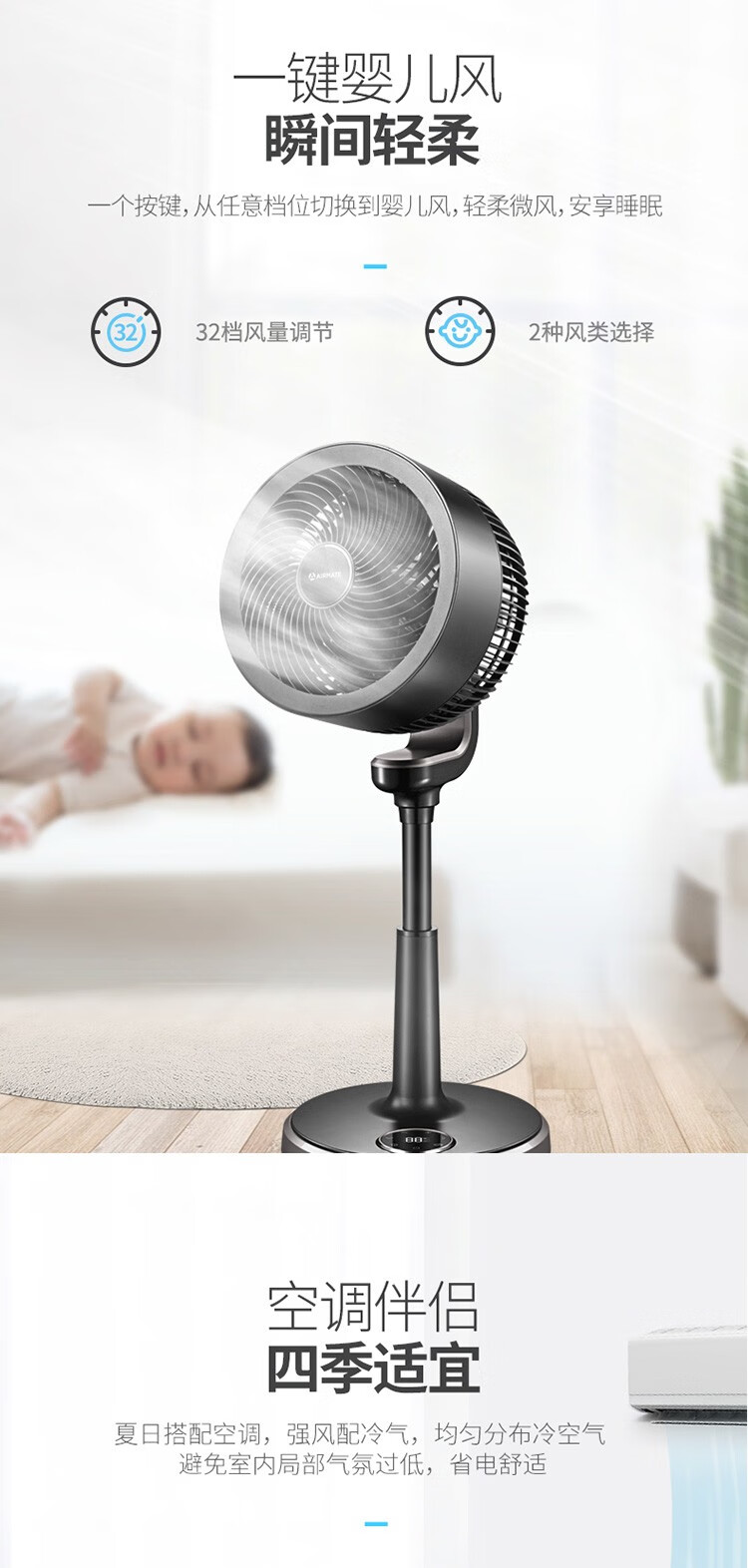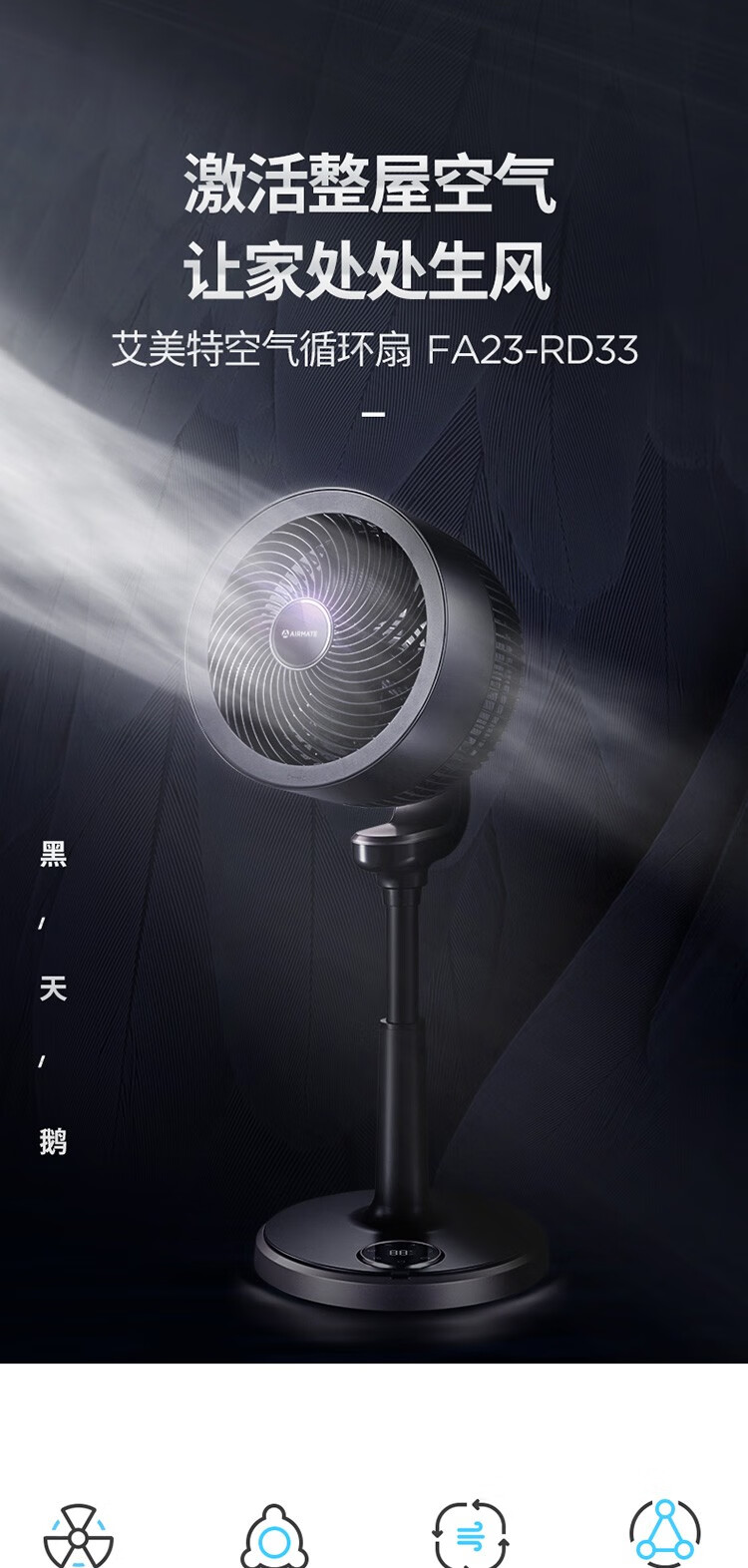 艾美特(AIRMATE)空气循环扇 FA23-RD33 直流变频节能小巧 带定向聚风导流罩全方位摇头远程遥控电风扇企业业务