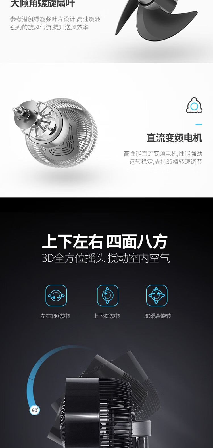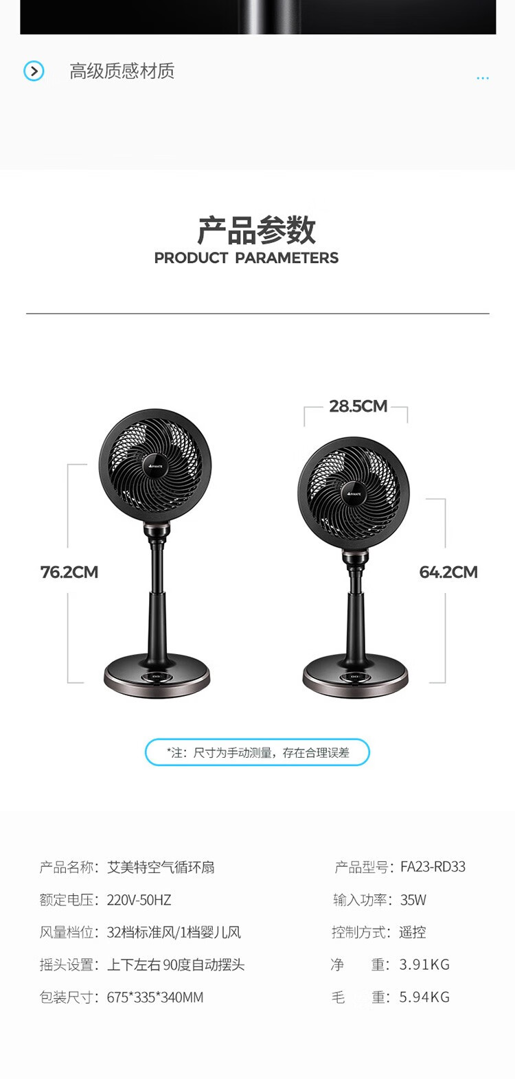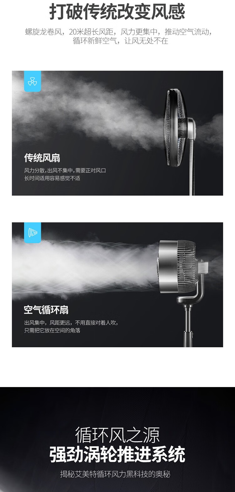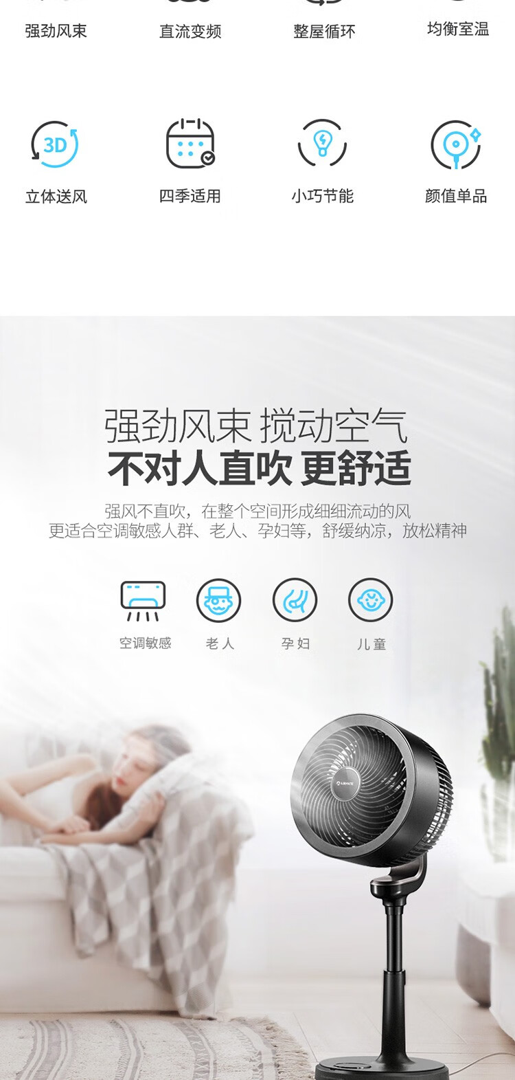 艾美特(AIRMATE)空气循环扇 FA23-RD33 直流变频节能小巧 带定向聚风导流罩全方位摇头远程遥控电风扇企业业务