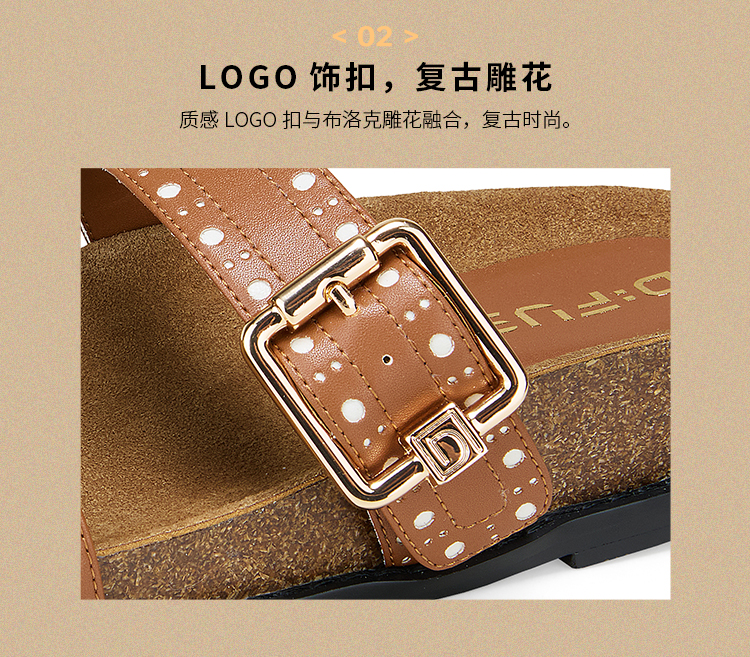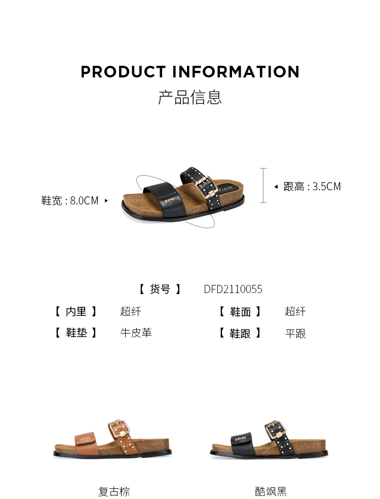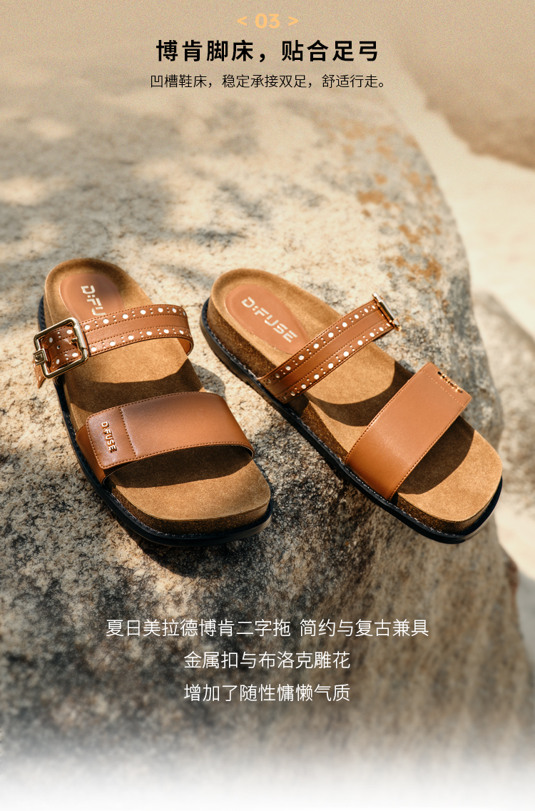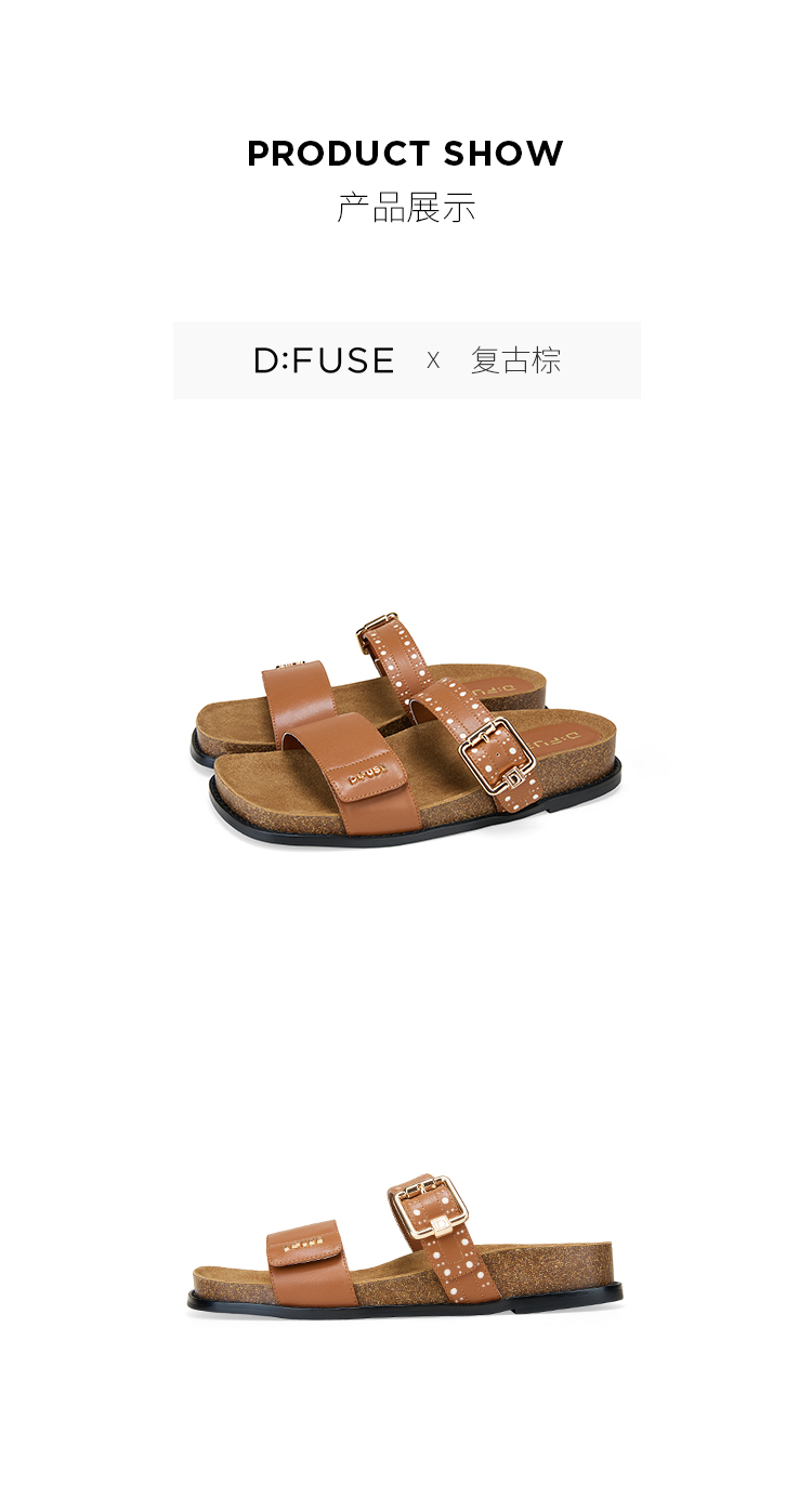 Dfuse迪芙斯2025夏季新款复古拖鞋布洛克勃肯鞋双条带凉拖女鞋DFD2110055