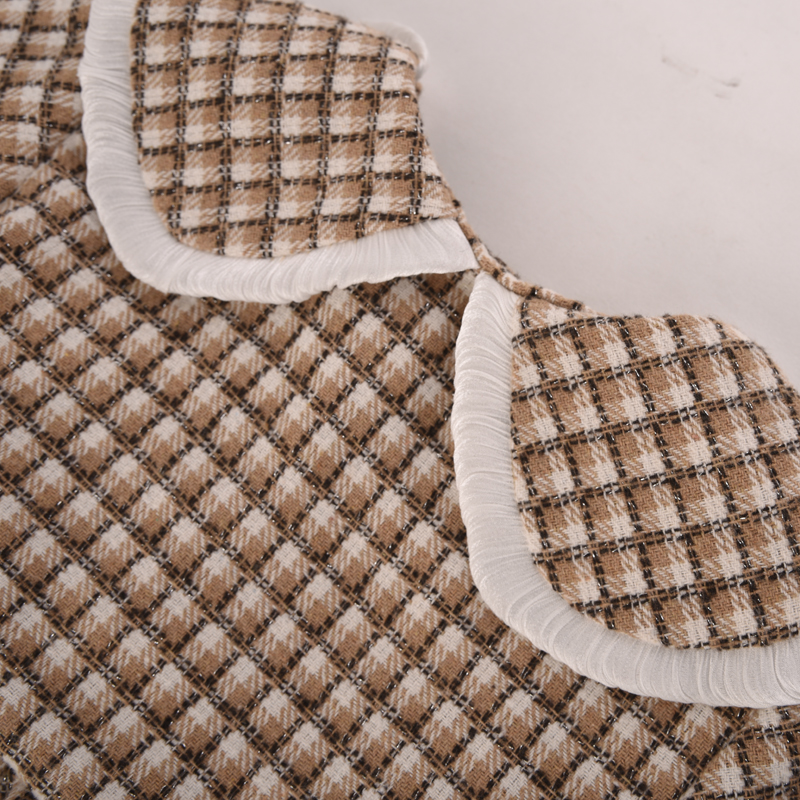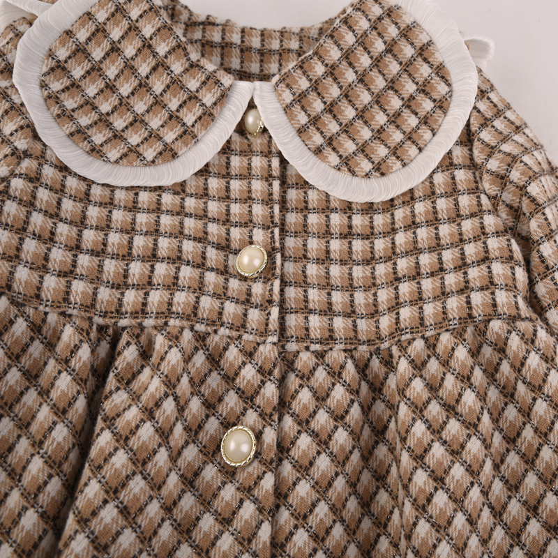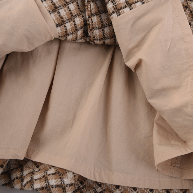 棉果果秋季新品女童薄毛呢网格气质翻领风衣M322100423428
