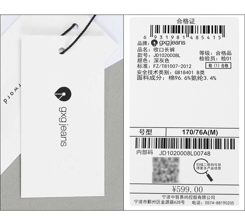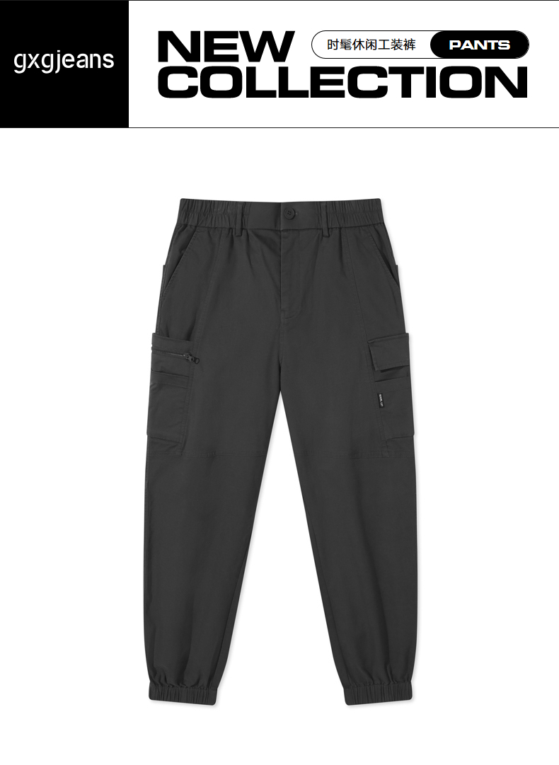 gxgjeans男装春休闲裤男潮流黑色工装束脚裤