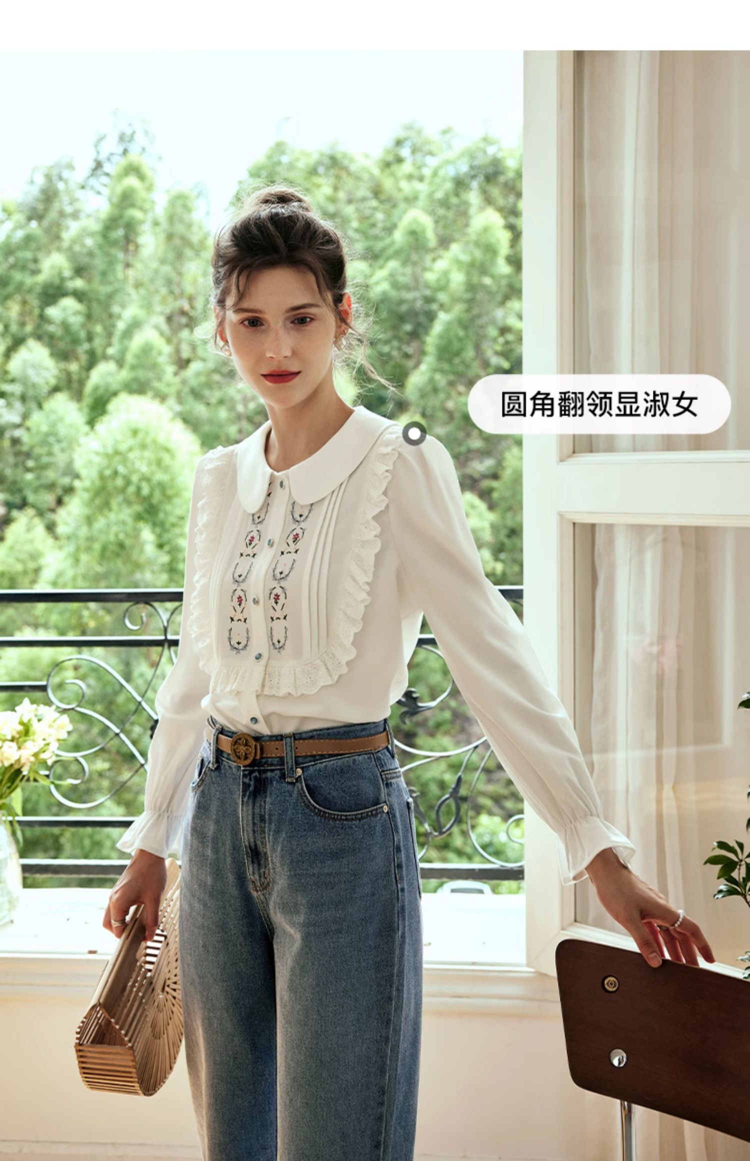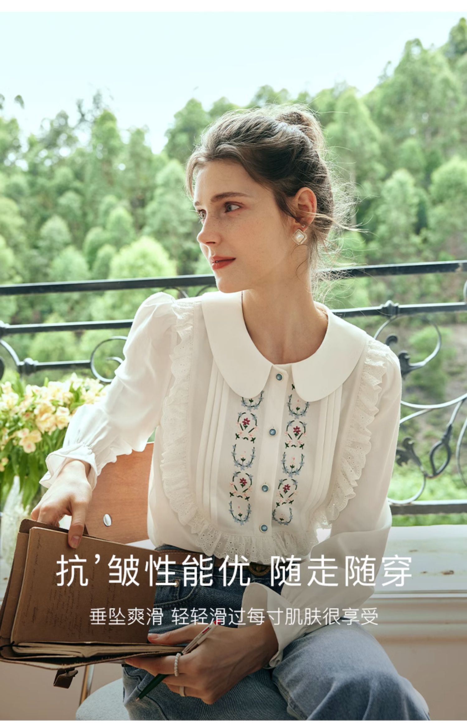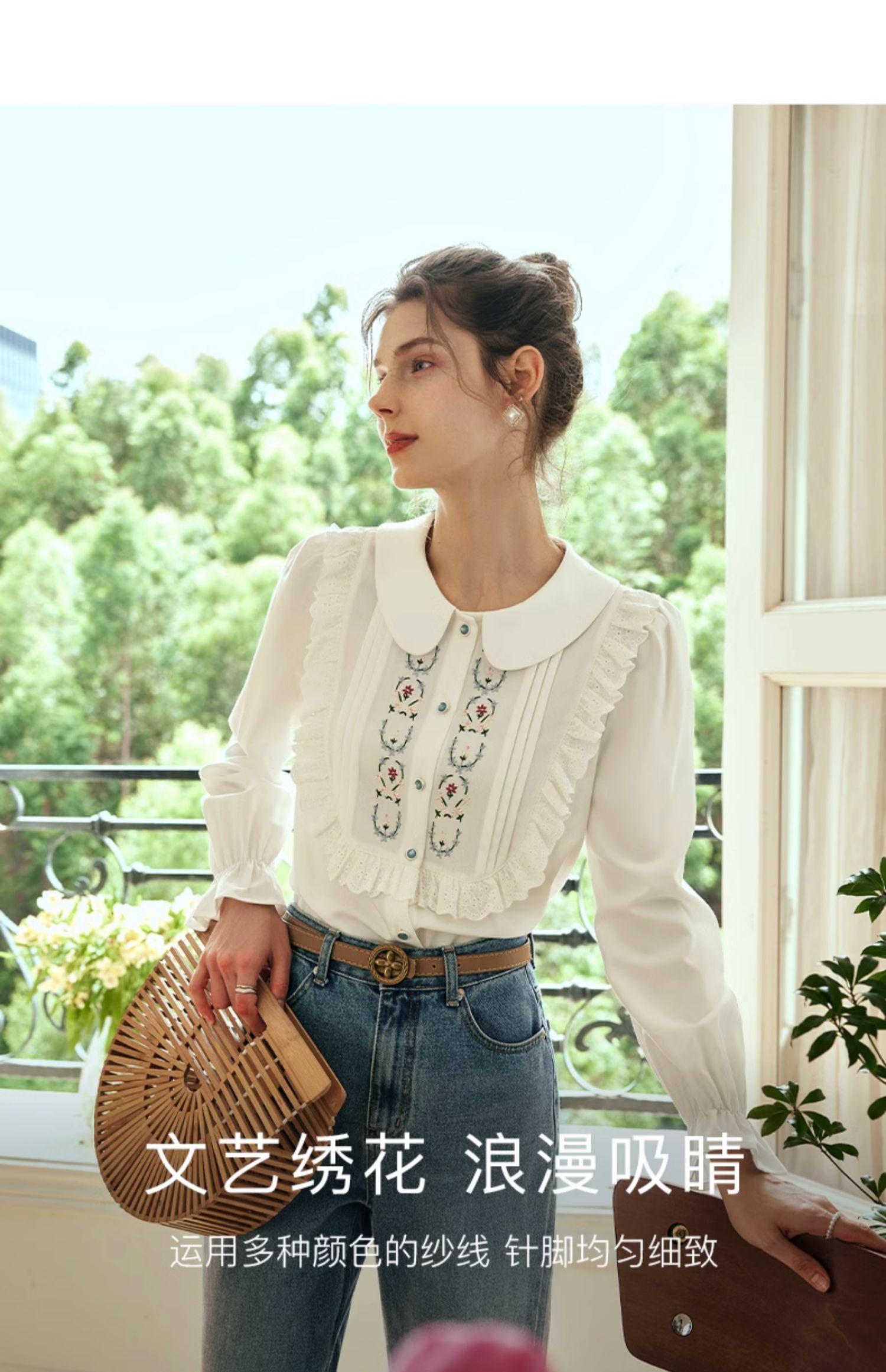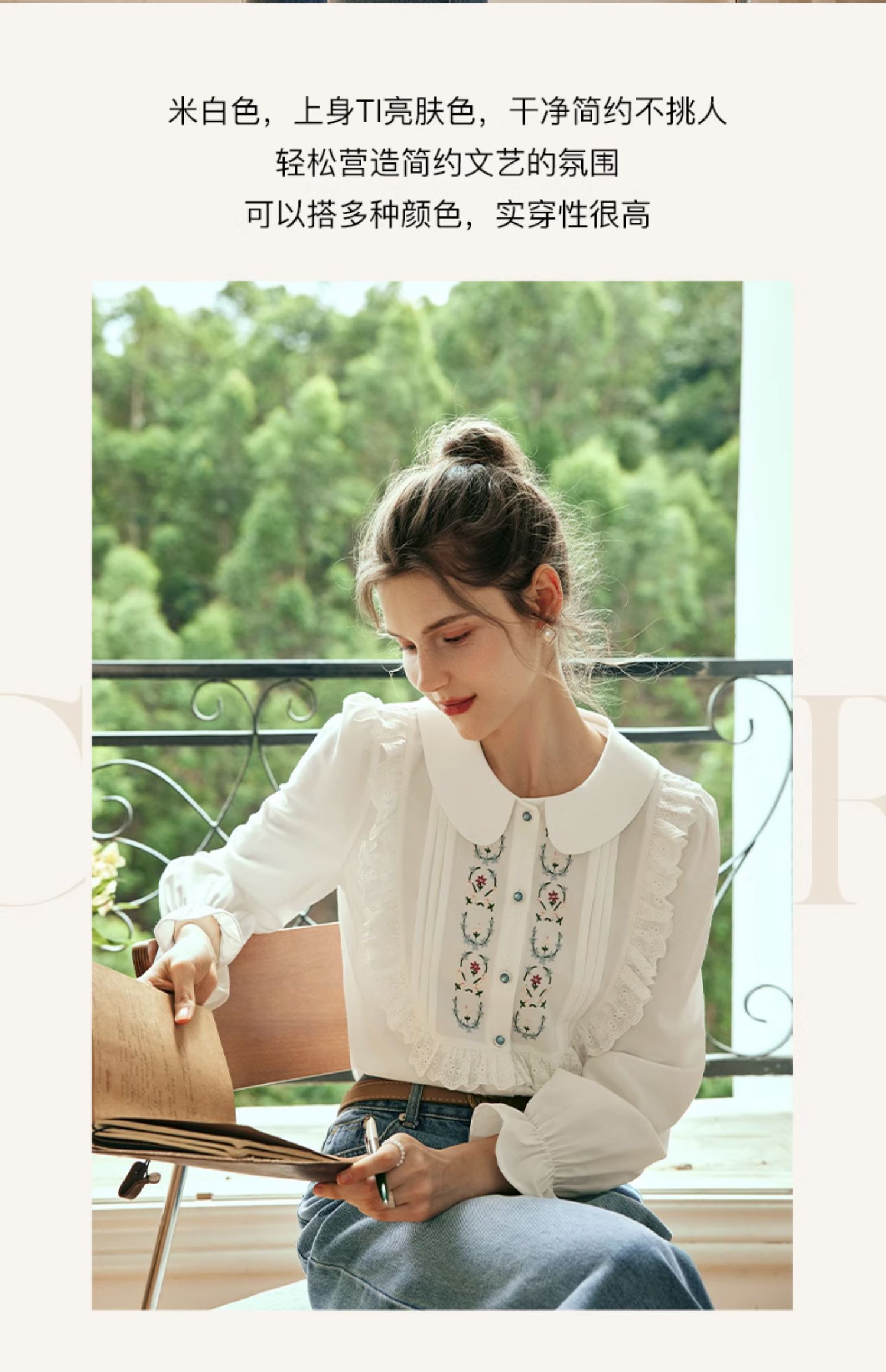 欧芮儿法式米白色衬衫女秋季2024年新款文艺减龄衬衣别致绝美小衫