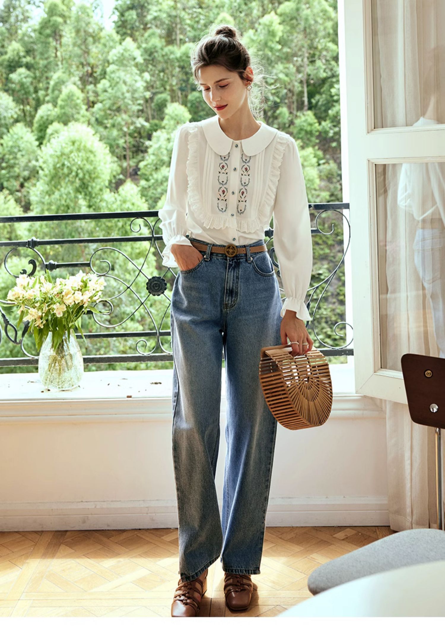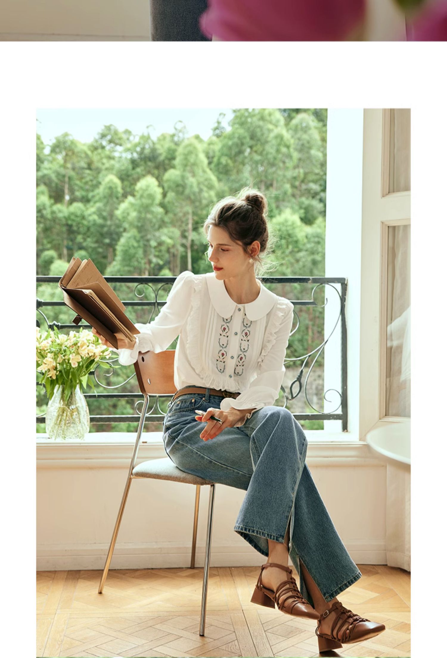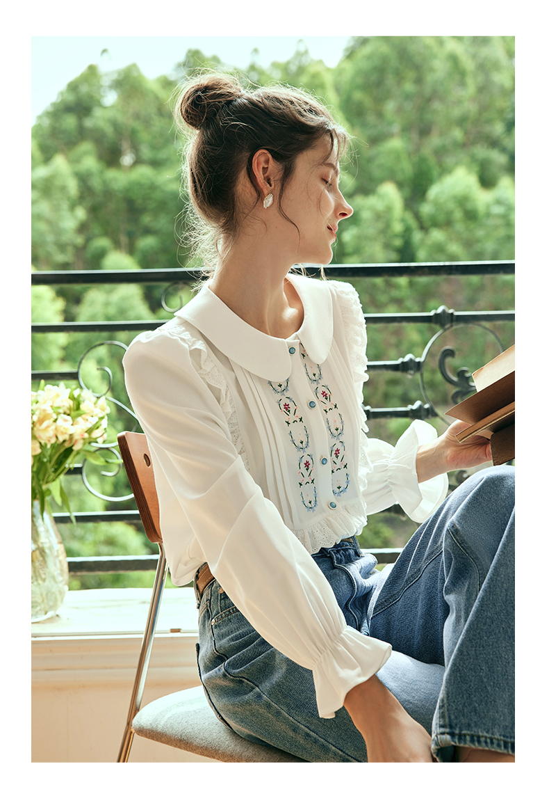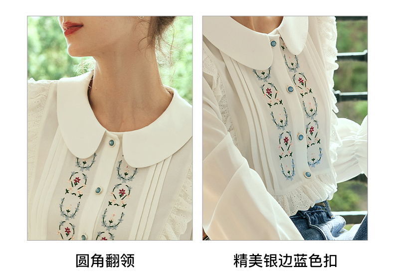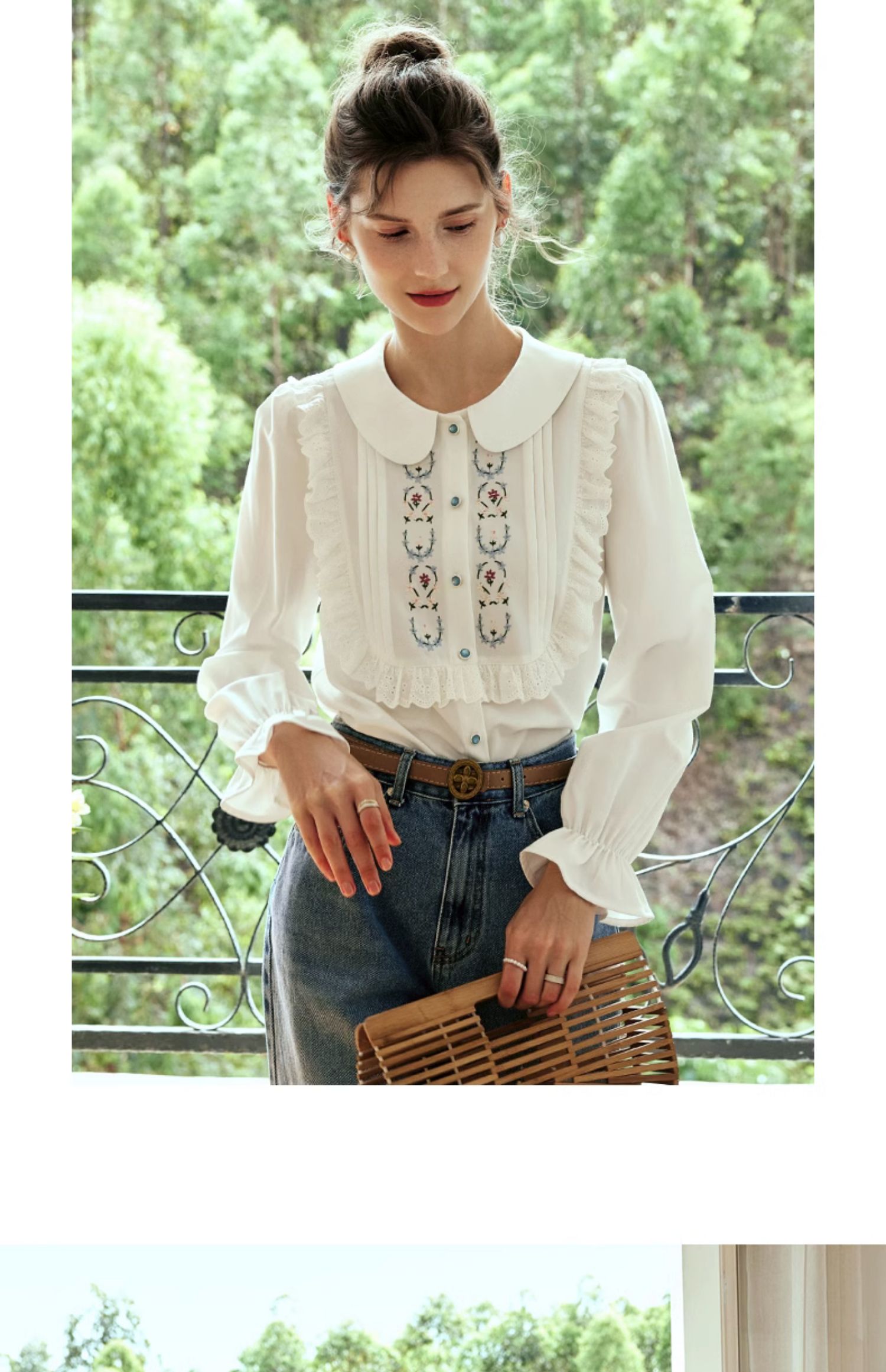 欧芮儿法式米白色衬衫女秋季2024年新款文艺减龄衬衣别致绝美小衫