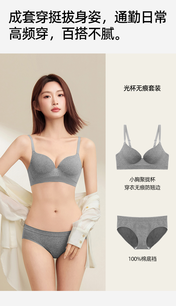 【文胸套装】熳洁儿 红色内衣结婚必备舒适无痕小胸聚拢两件套无钢圈一片式23761506