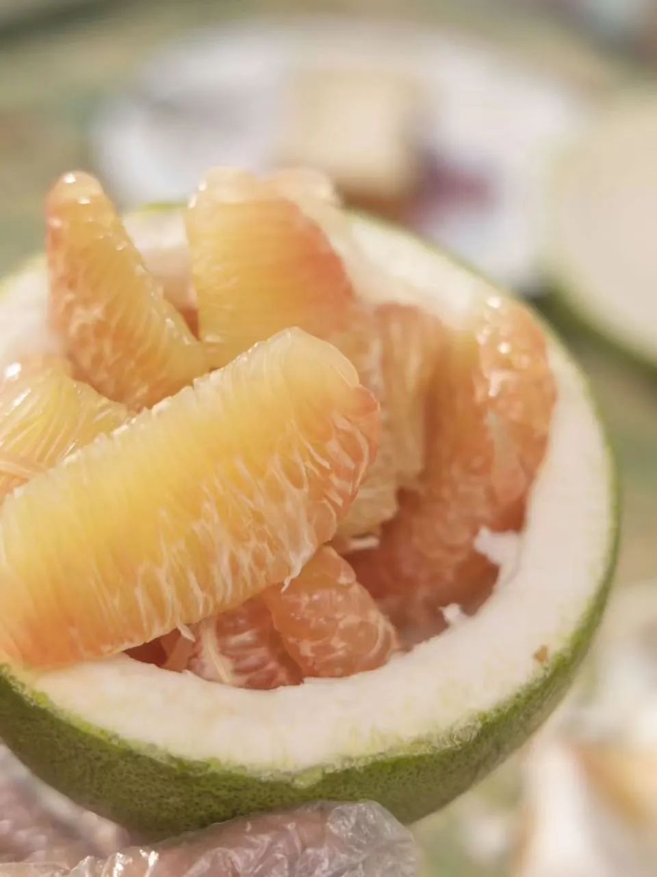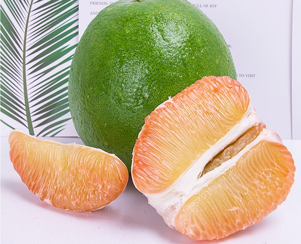 石家庄优选仓库速达,翡翠柚子 青皮爆汁柚,入口无渣,皮薄多汁,果肉晶莹剔透,2枚散装/3.4斤/3.6斤左右