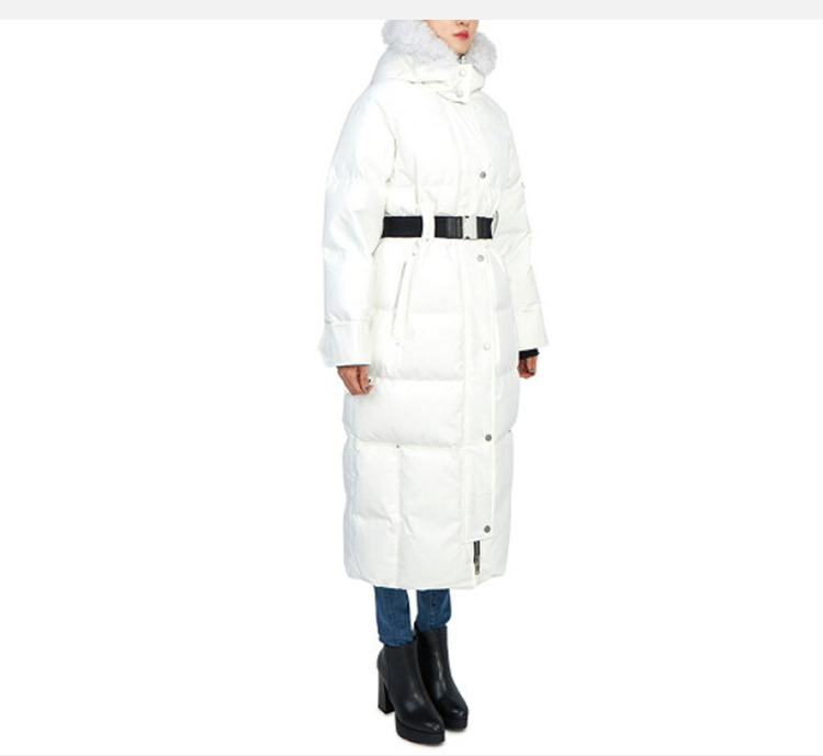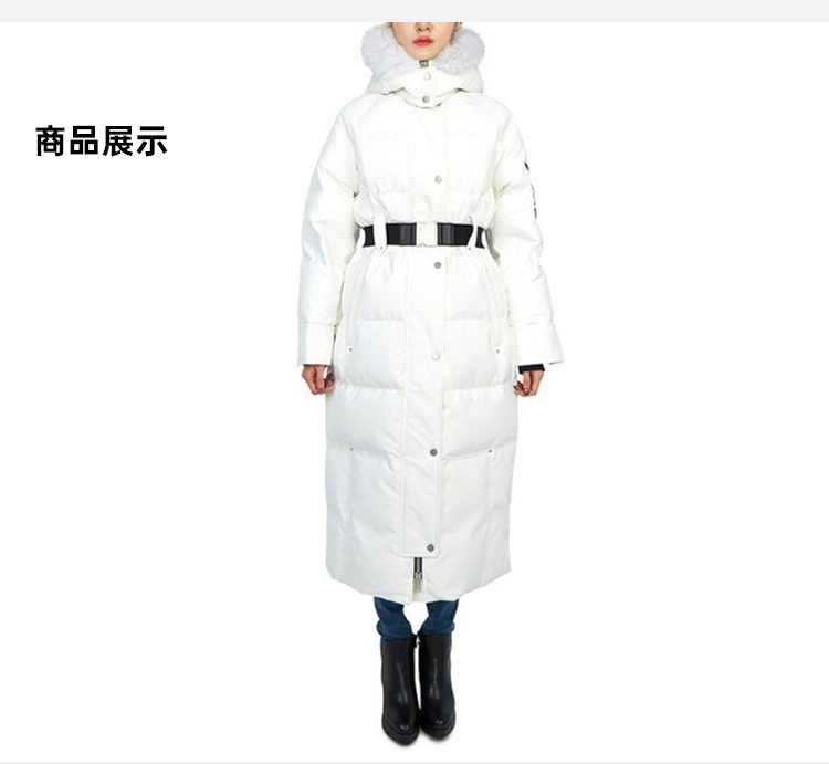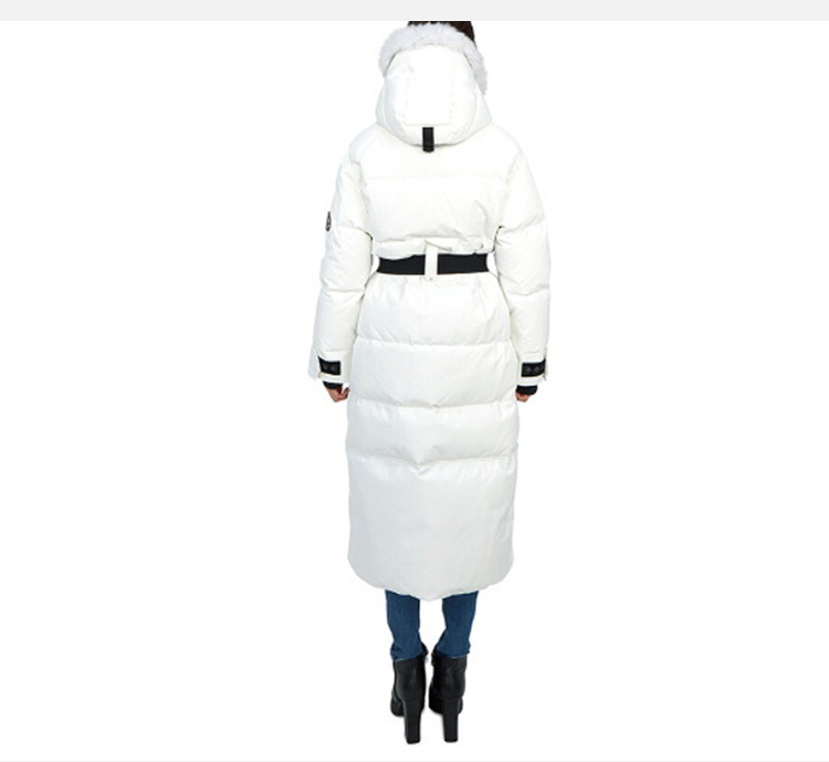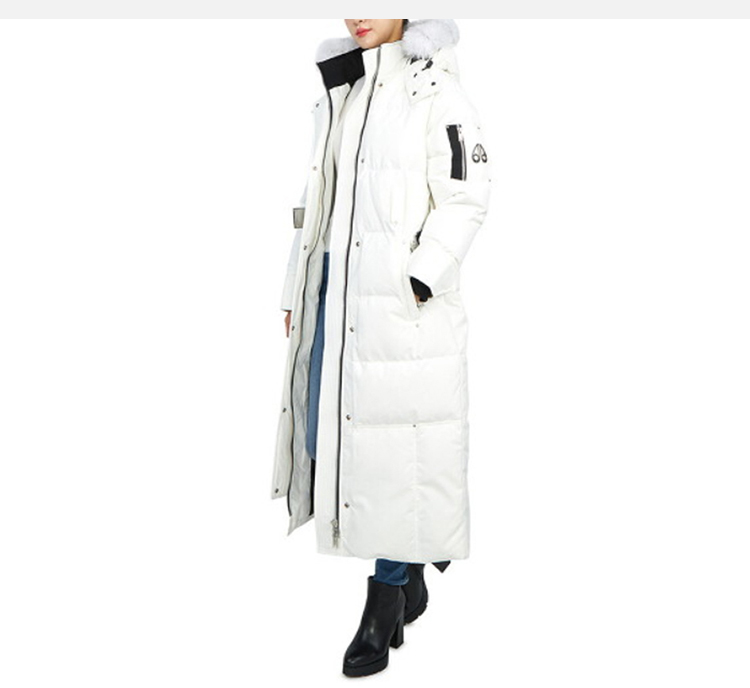MOOSE KNUCKLES 女士金属驼鹿指关节徽标白毛领绗缝长款束腰连帽羽绒服 白色 M32LP227 874