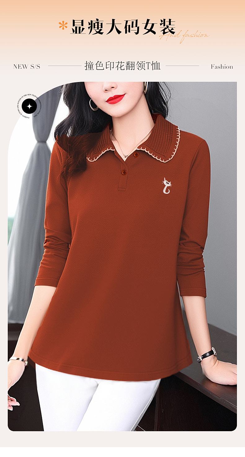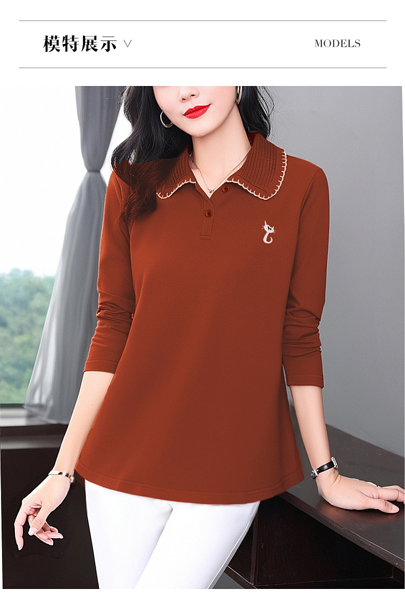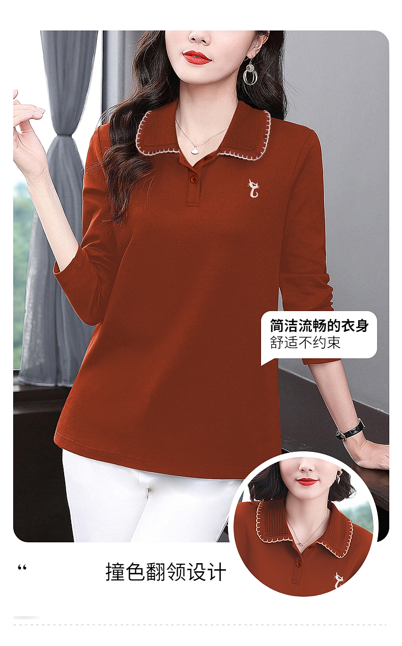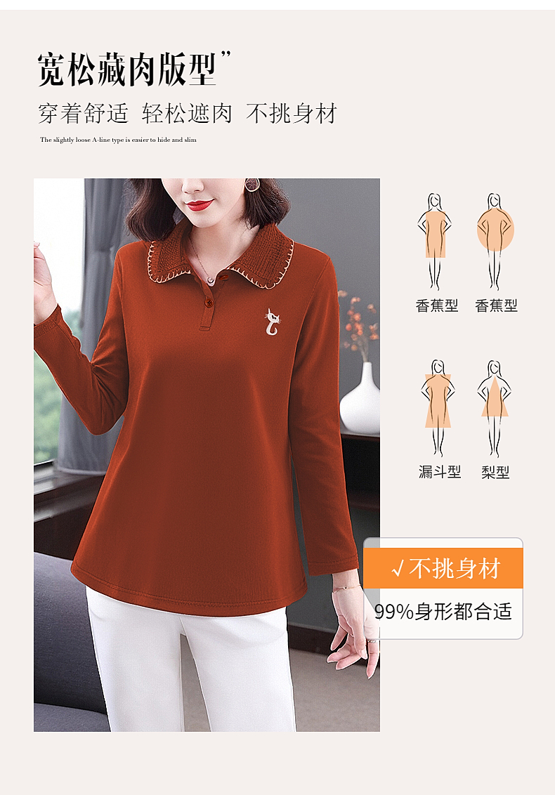 中年妈妈秋装长袖T恤女2026新款大码polo衫花边翻领上衣洋气减龄