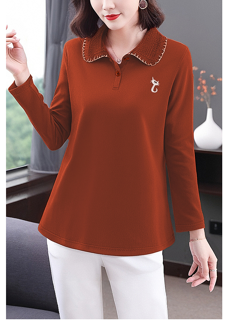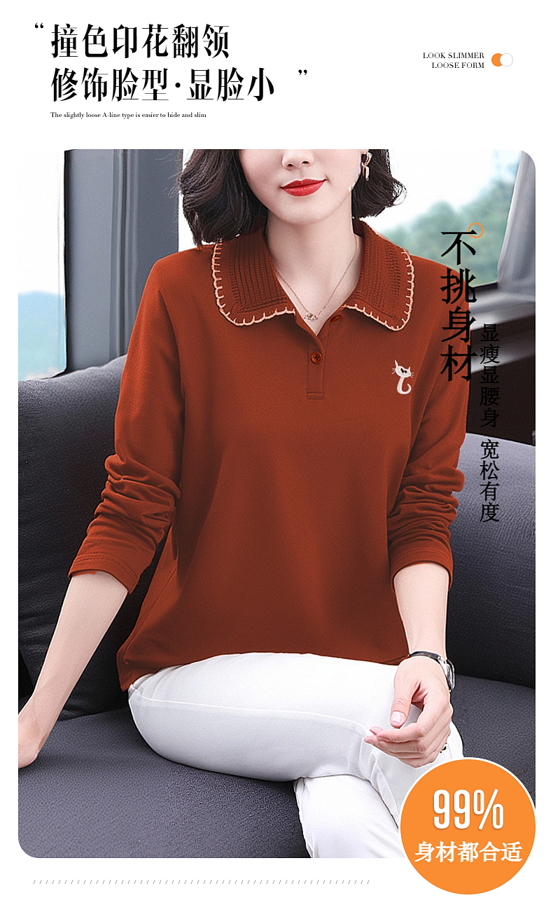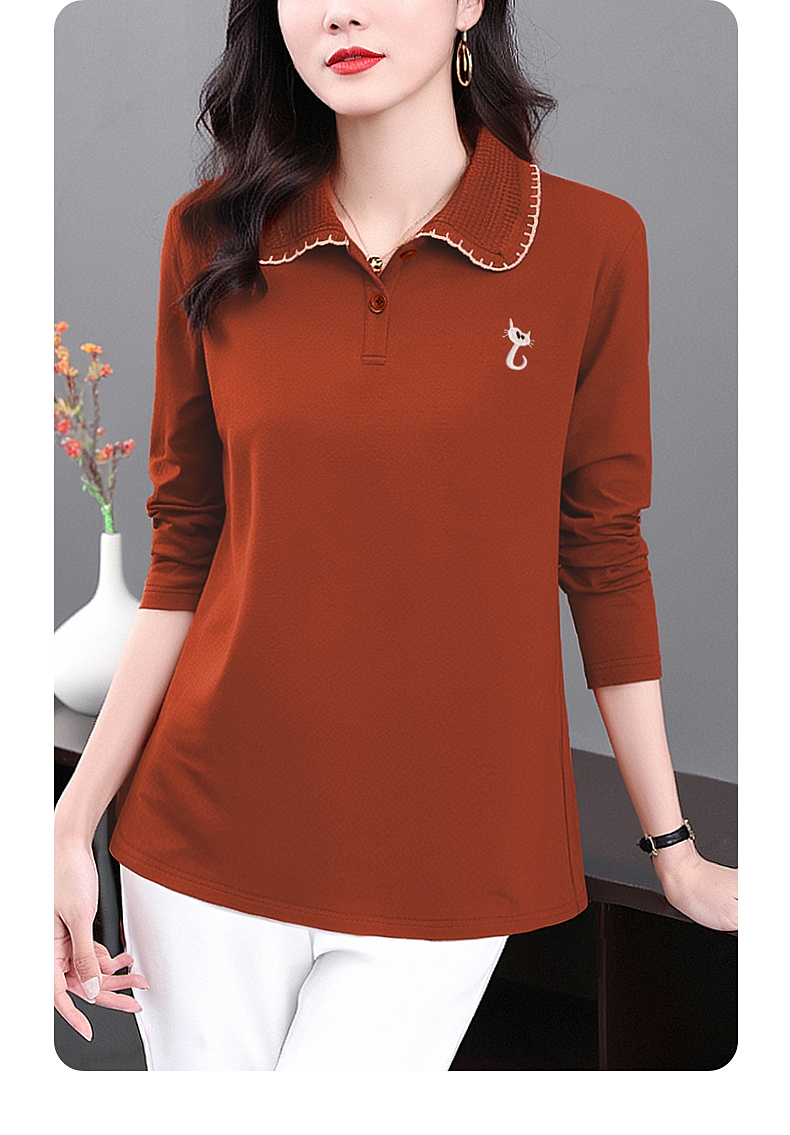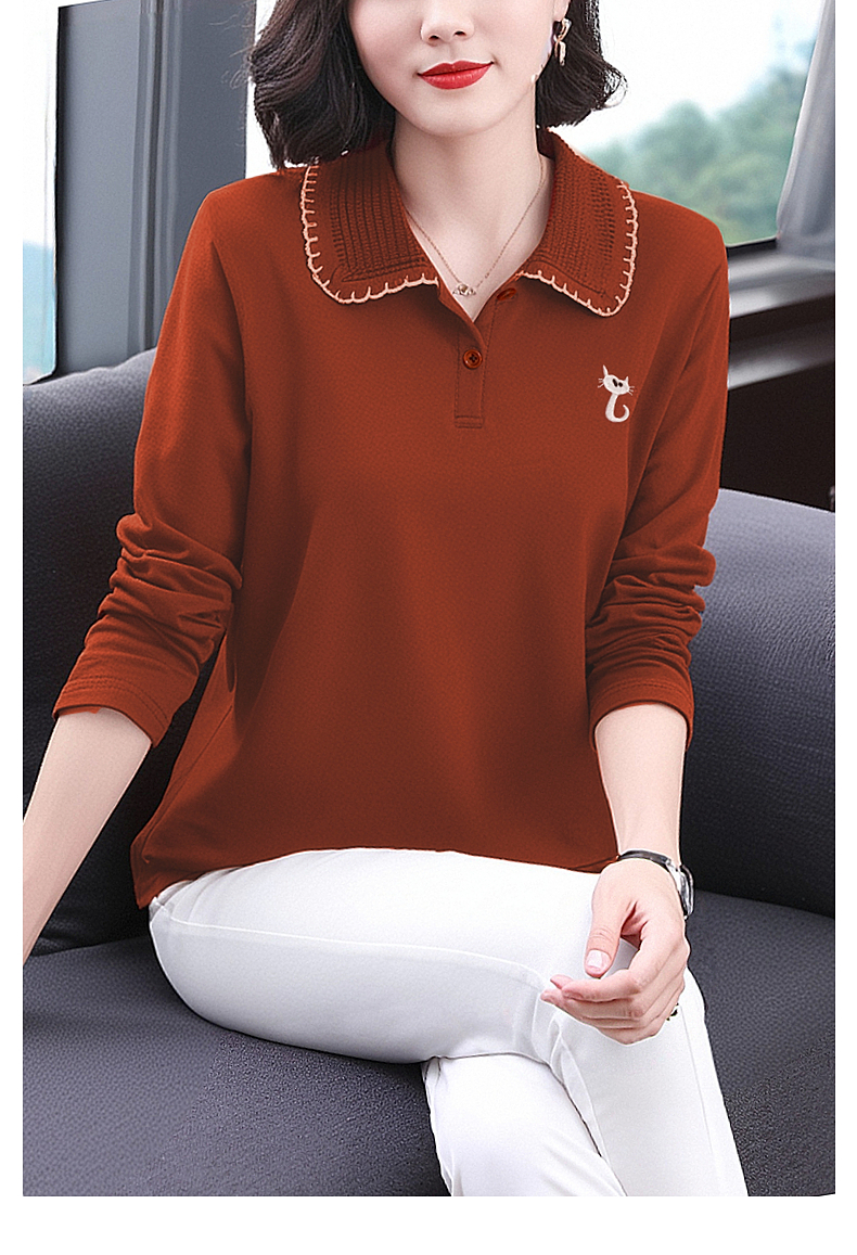 中年妈妈秋装长袖T恤女2026新款大码polo衫花边翻领上衣洋气减龄