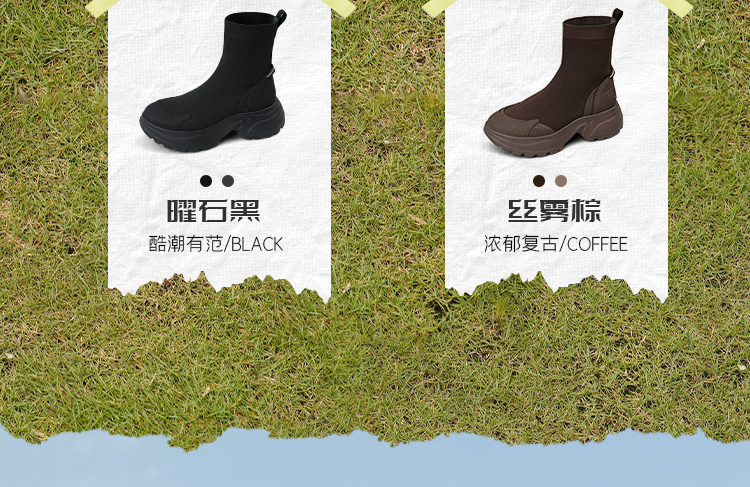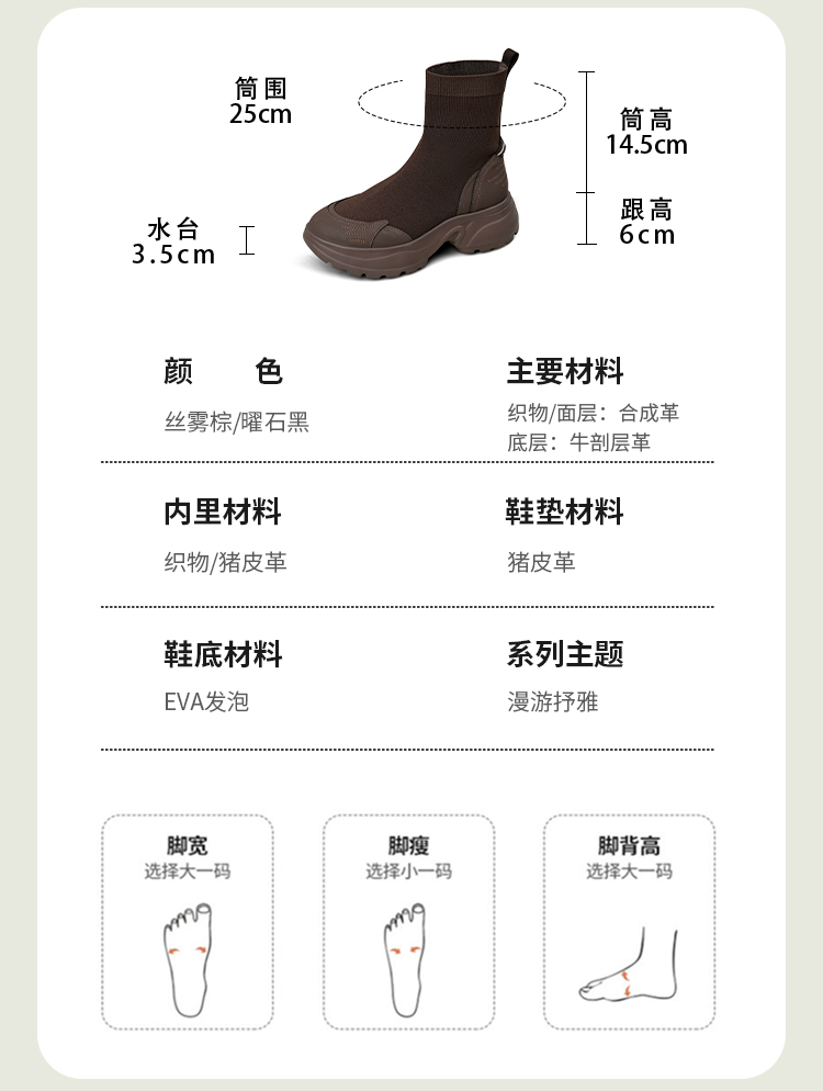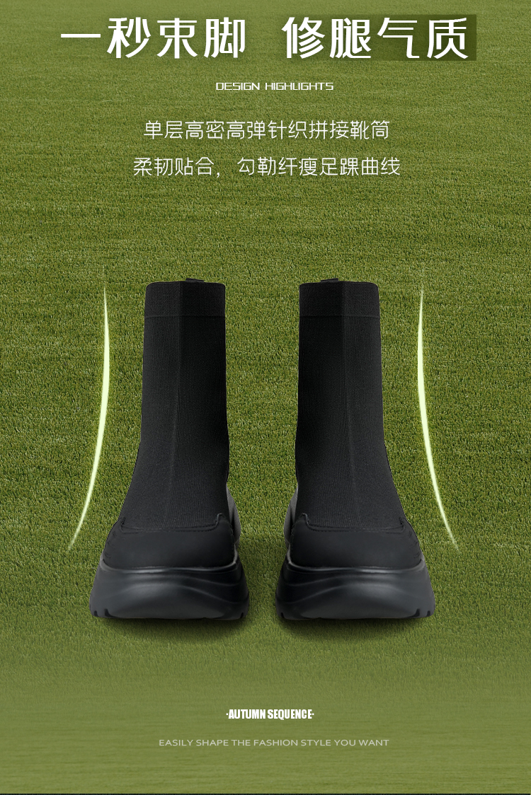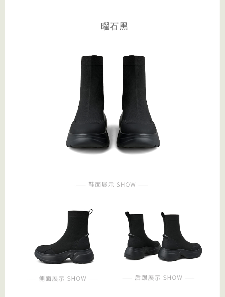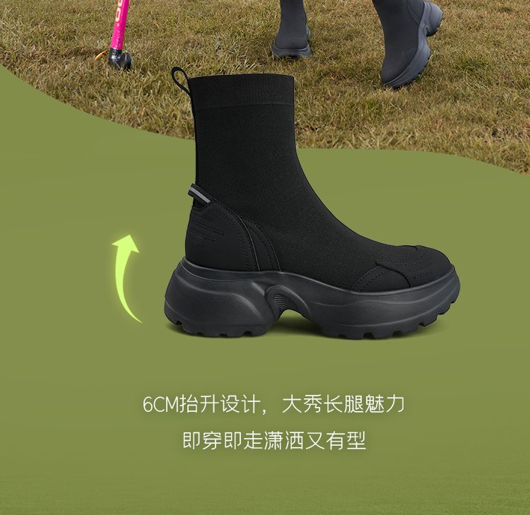 Safiya/索菲娅2025运动机能风飞织休闲百搭厚底增高弹力瘦瘦靴SFD4116108