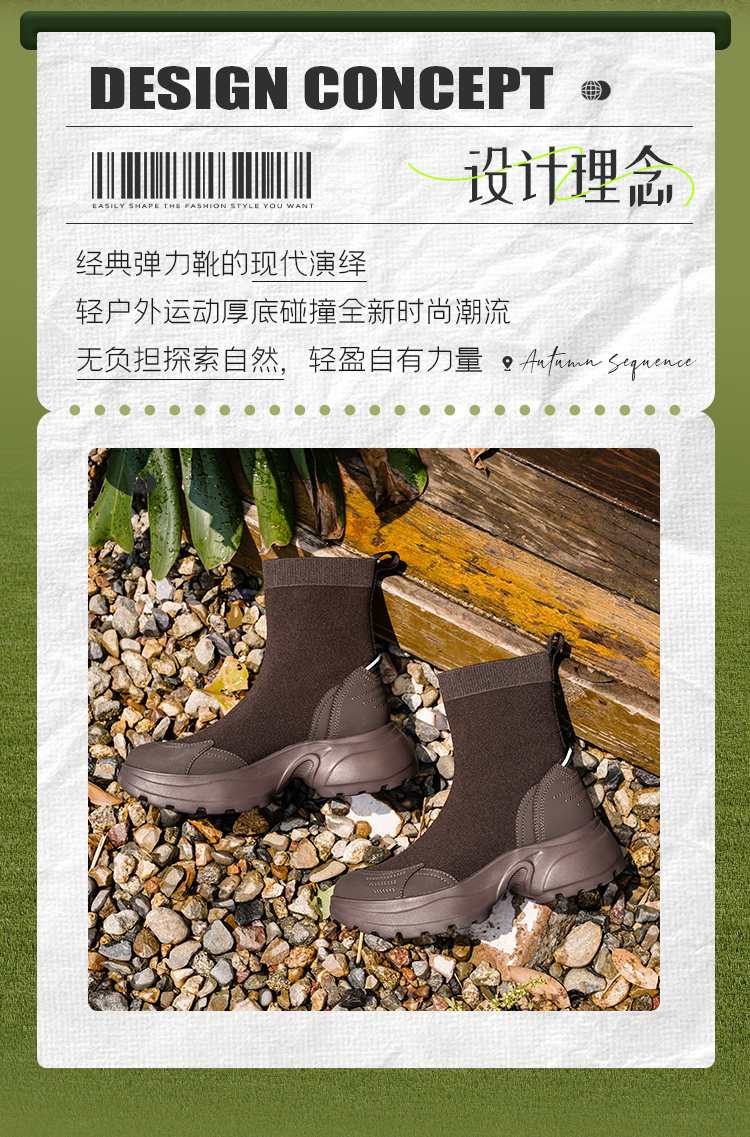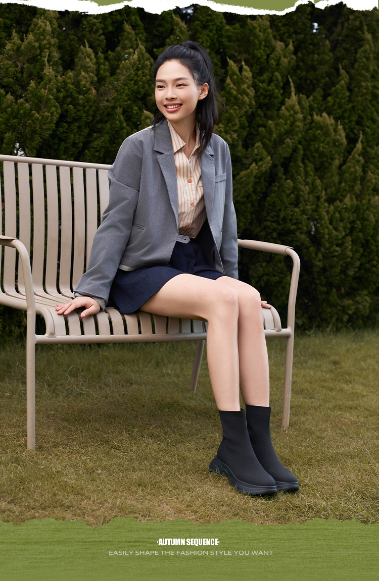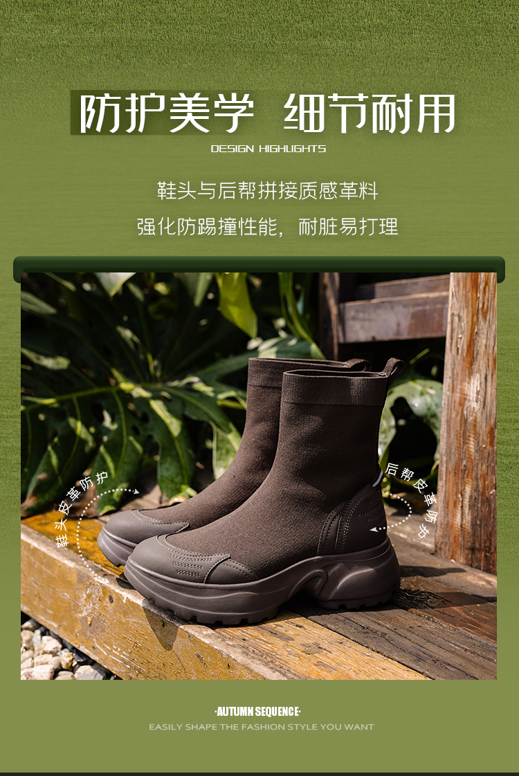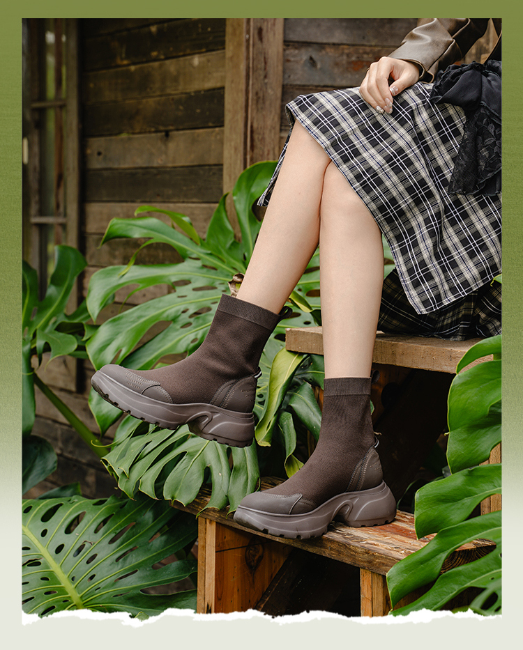 Safiya/索菲娅2025运动机能风飞织休闲百搭厚底增高弹力瘦瘦靴SFD4116108