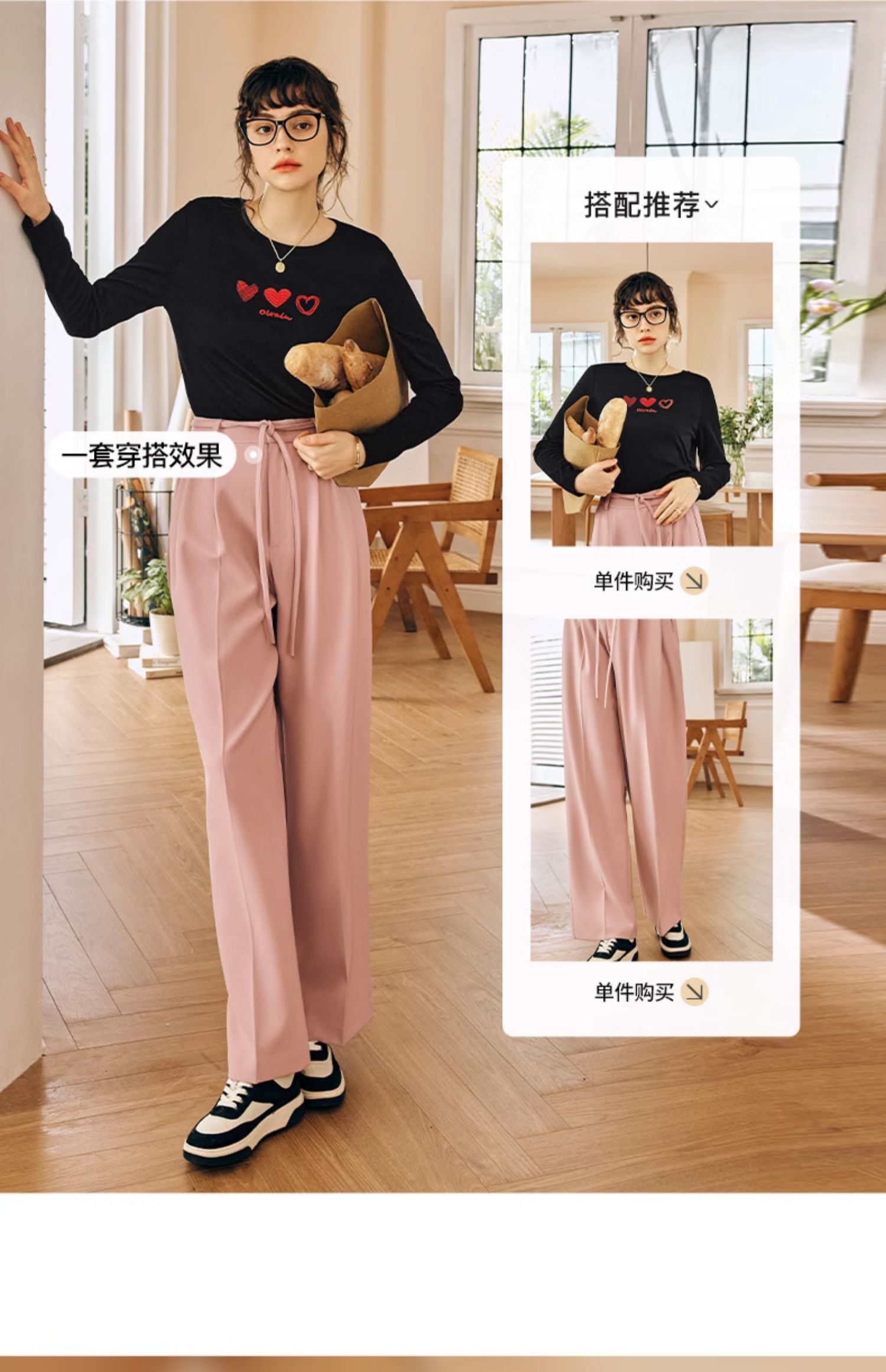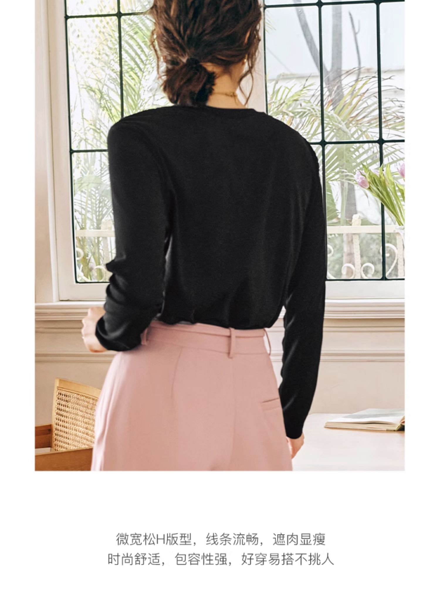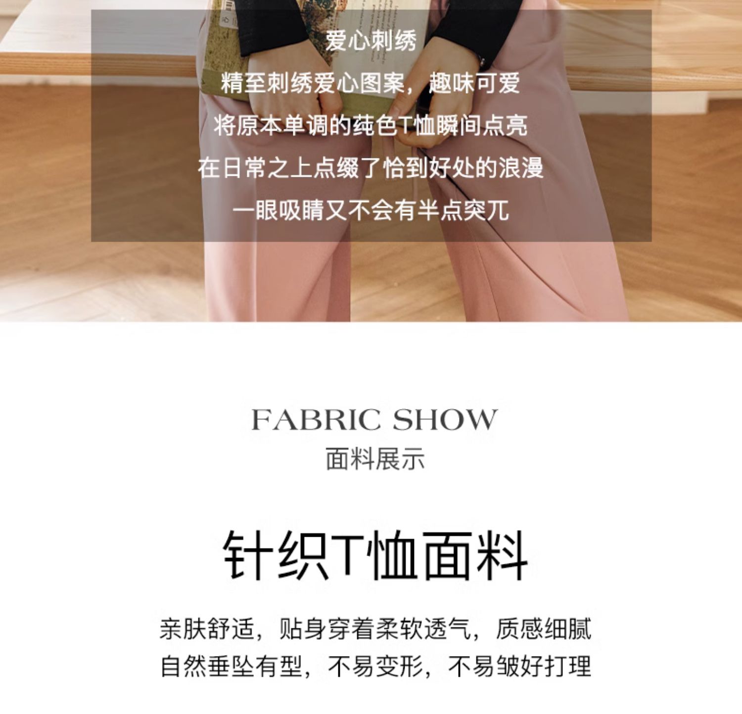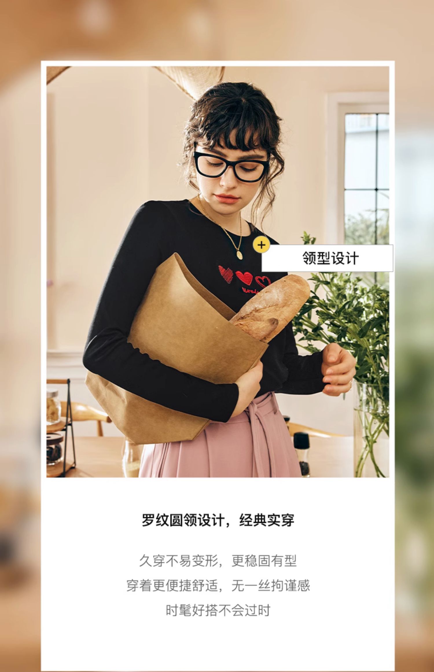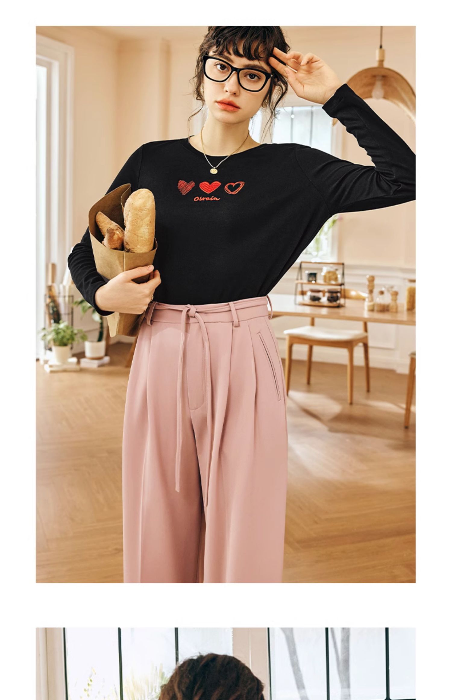 OLrain欧芮儿法式黑色长袖T恤女春季2024年新款爱心刺绣休闲上衣