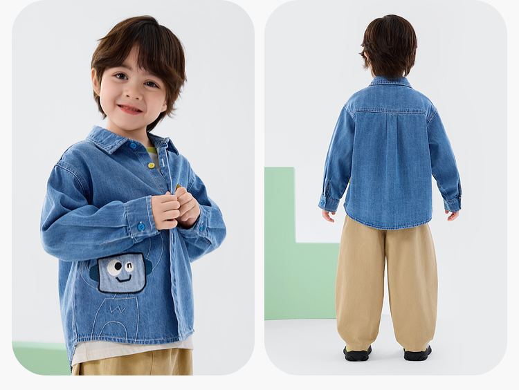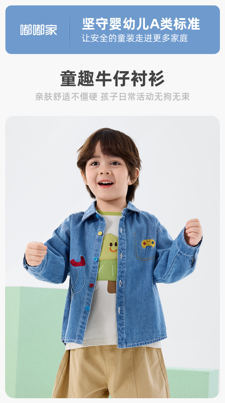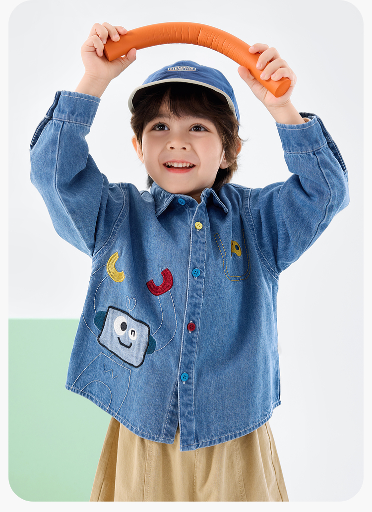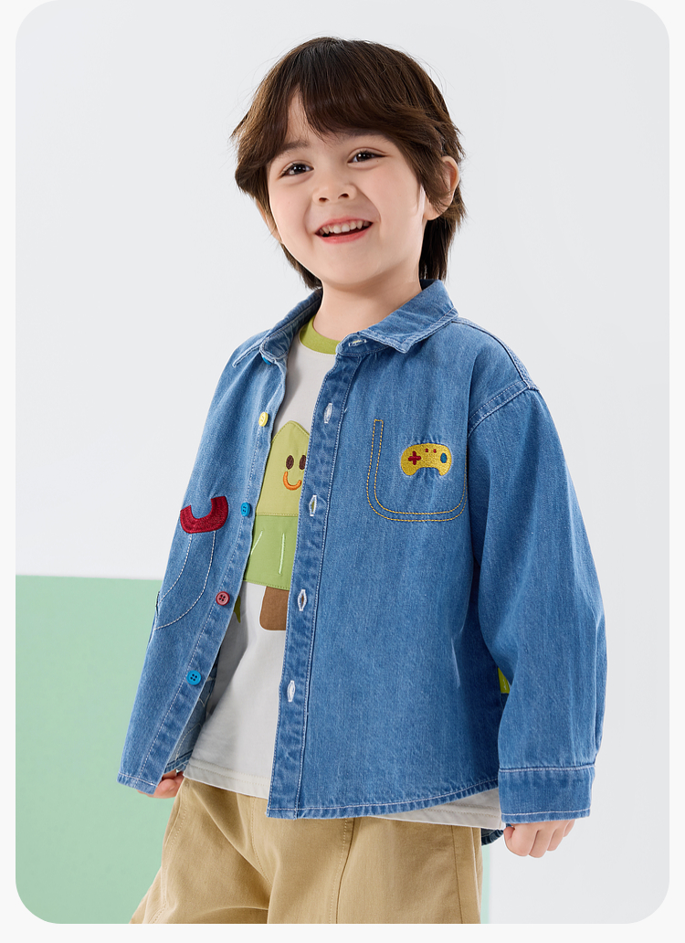 嘟嘟家儿童衬衫春装男童衣服宽松宝宝牛仔外套百搭女童上衣潮春秋D6ACS037
