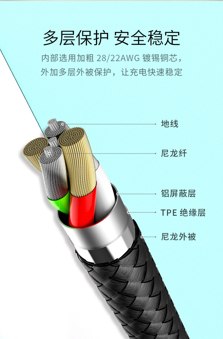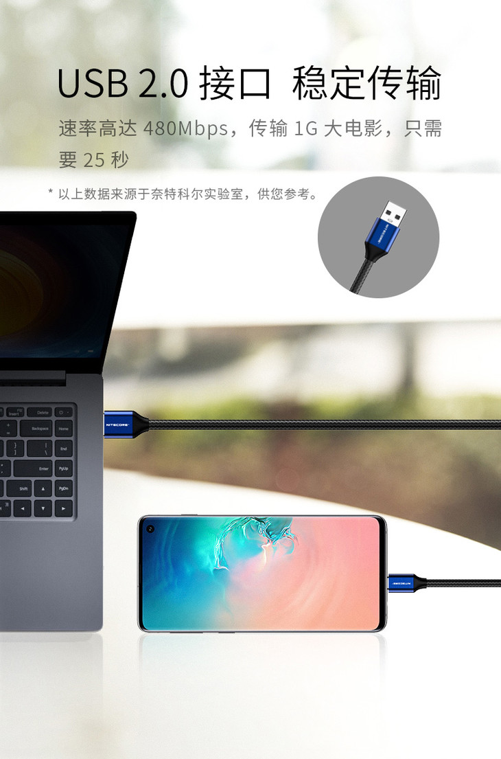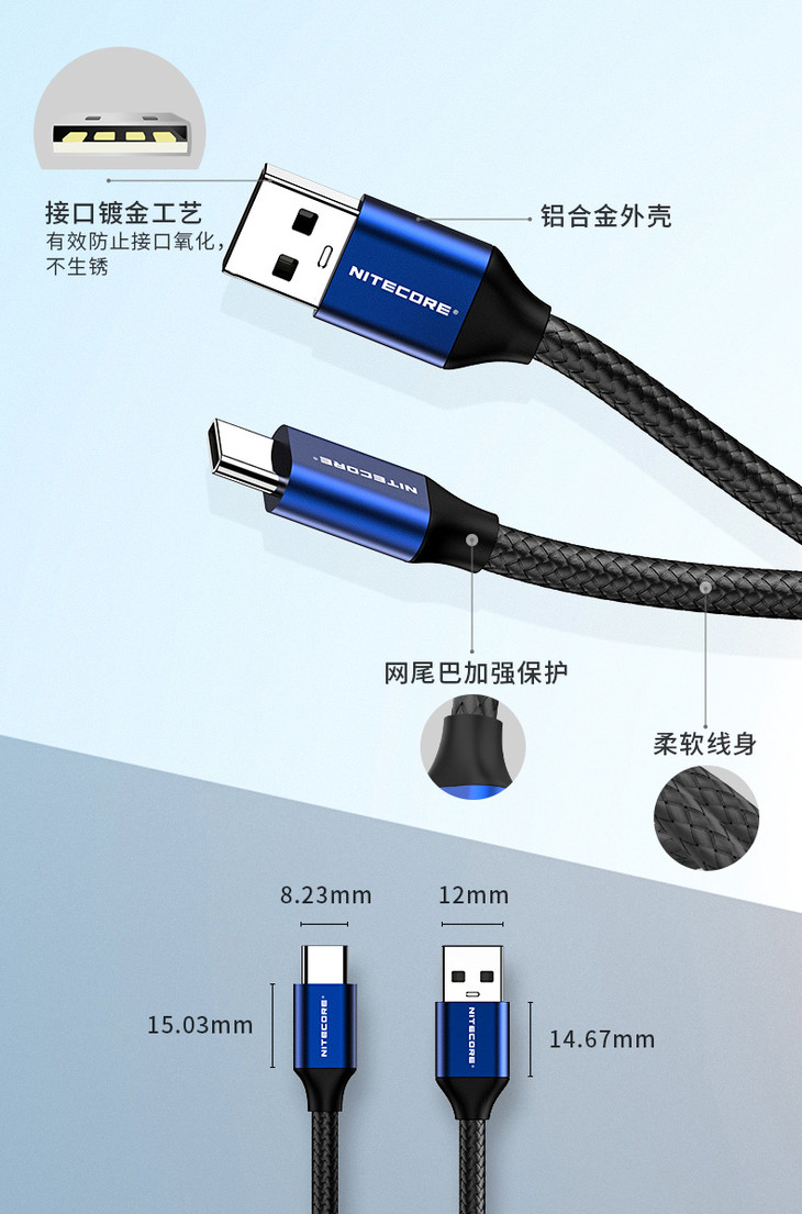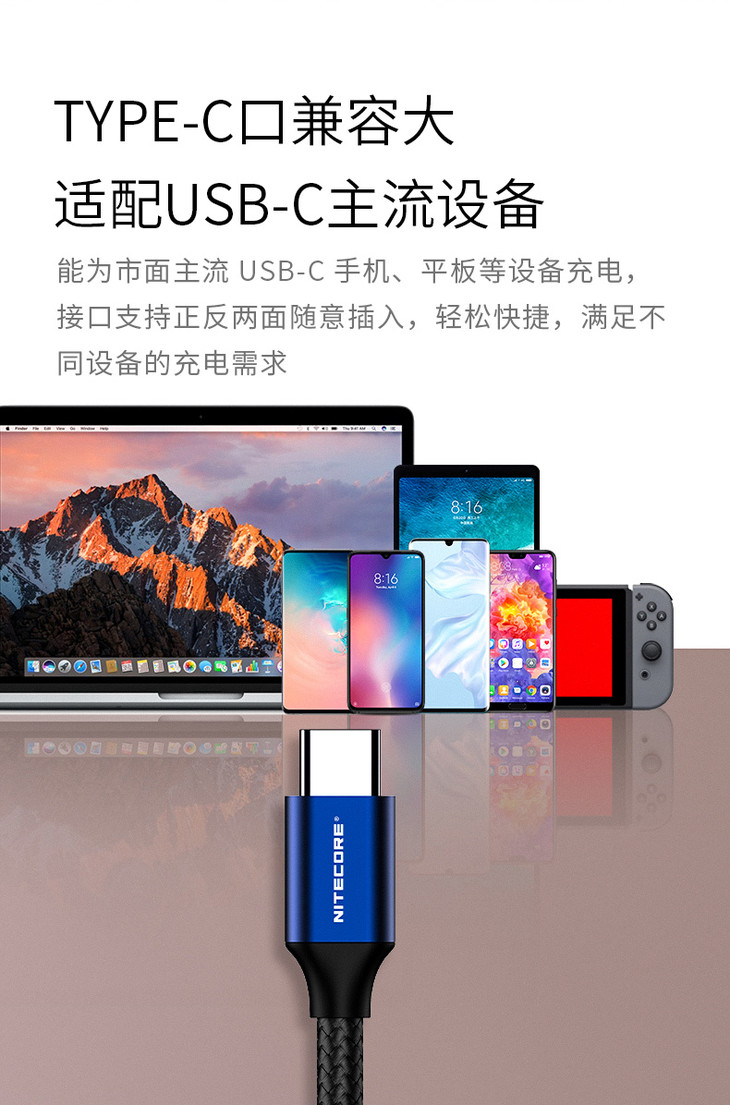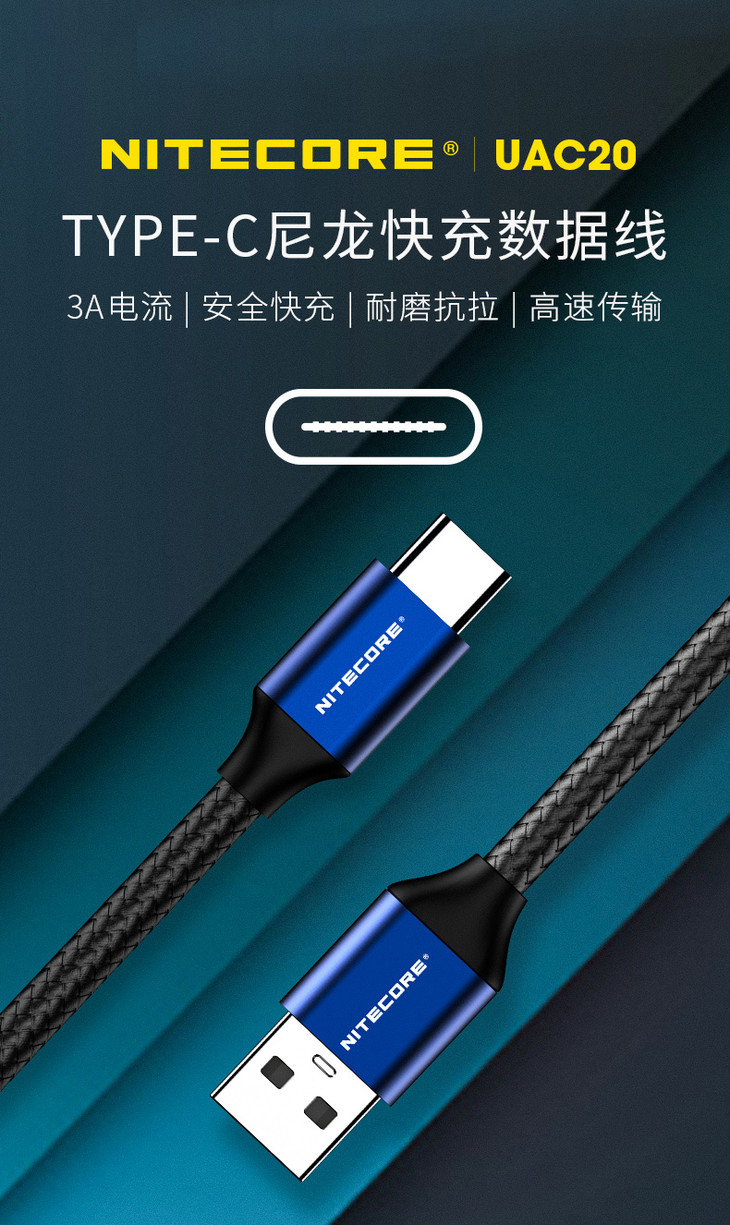 奈特科尔NITECORE UAC20尼龙USB Type-C快充数据线3A电流