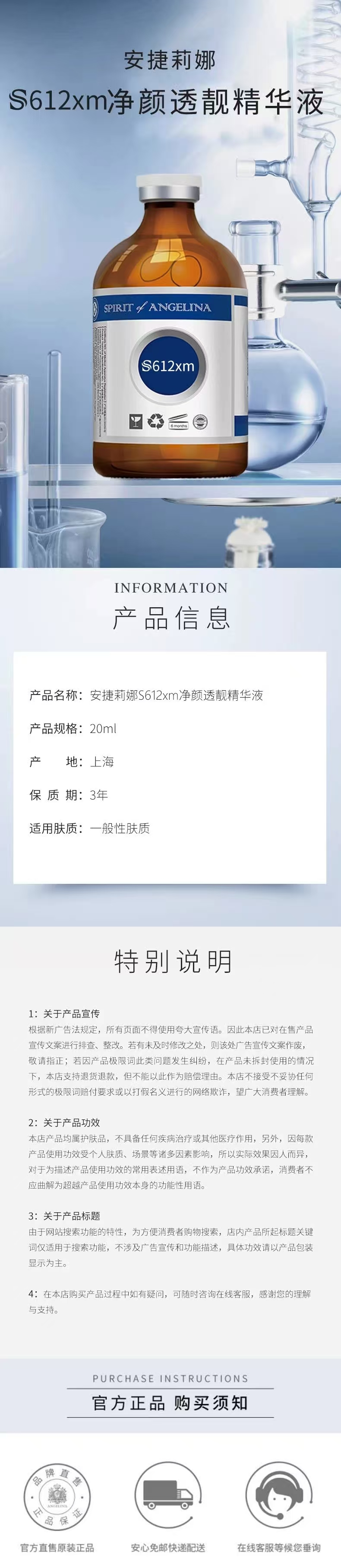 【安捷莉娜】S612xm 净颜透靓精华液20ml*5瓶