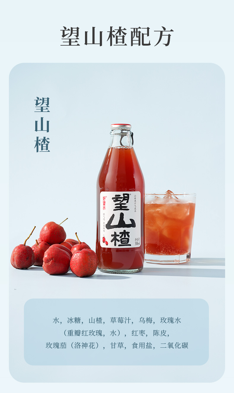 好望水望山300ml*6瓶 山楂气泡水 山楂汁饮料气泡水 果汁 饮品 健康饮料 夏日饮品 山楂果汁气泡水