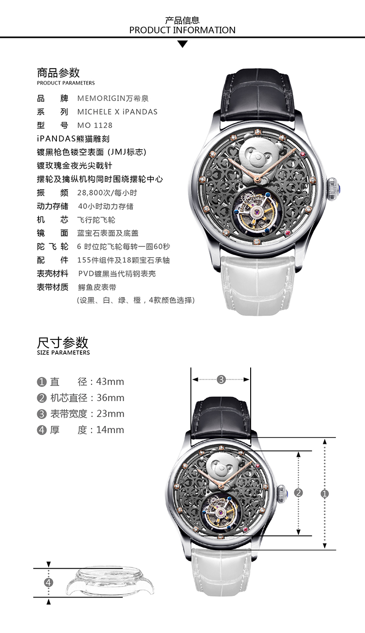 MEMORIGIN万希泉李嘉欣设计陀飞轮慈善腕表真皮镂空熊猫女款手表