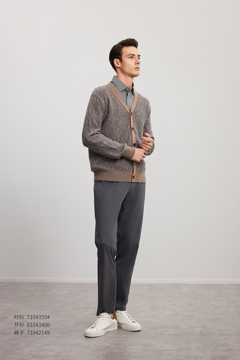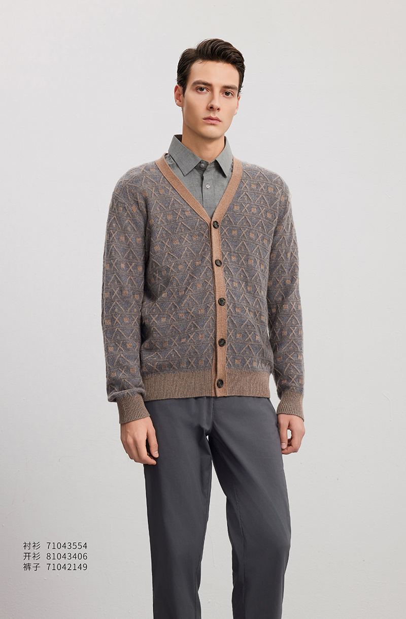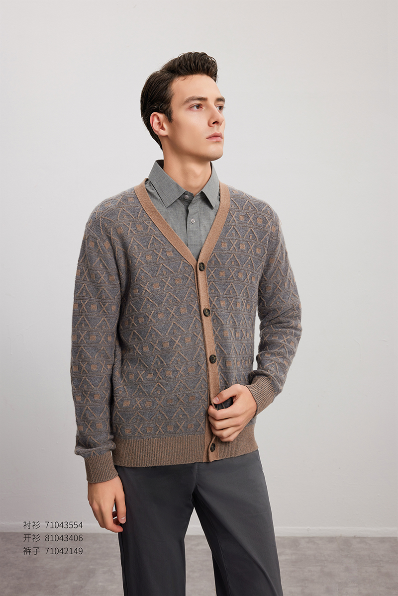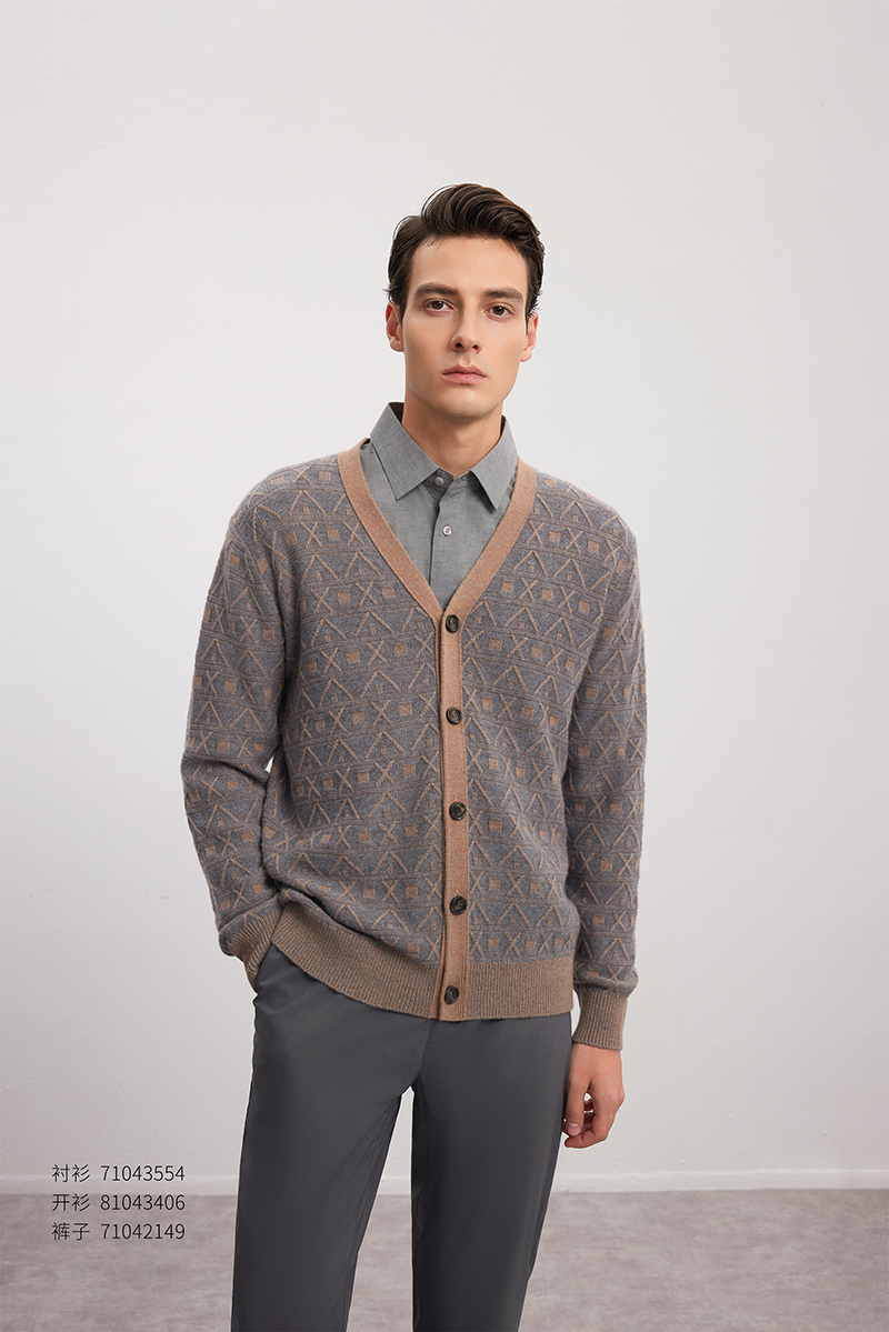 【V领撞色羊绒开衫】羊绒世家秋冬新品男士100%山羊绒针织开衫外套