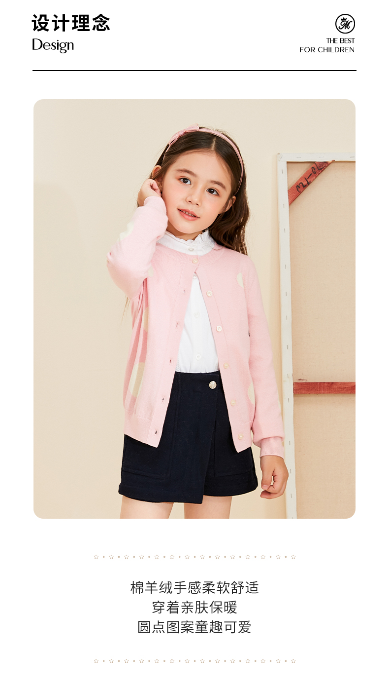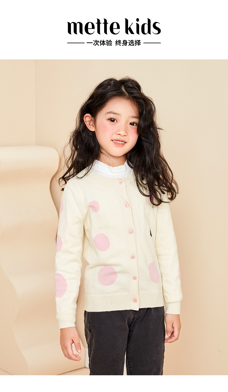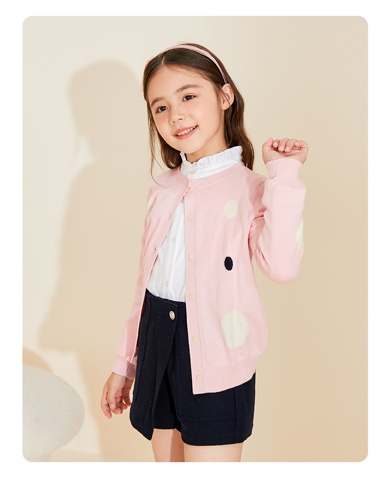 【薄款女童针织开始】22年秋季新品女宝长袖针织开衫圆点薄款棉羊绒小外套
