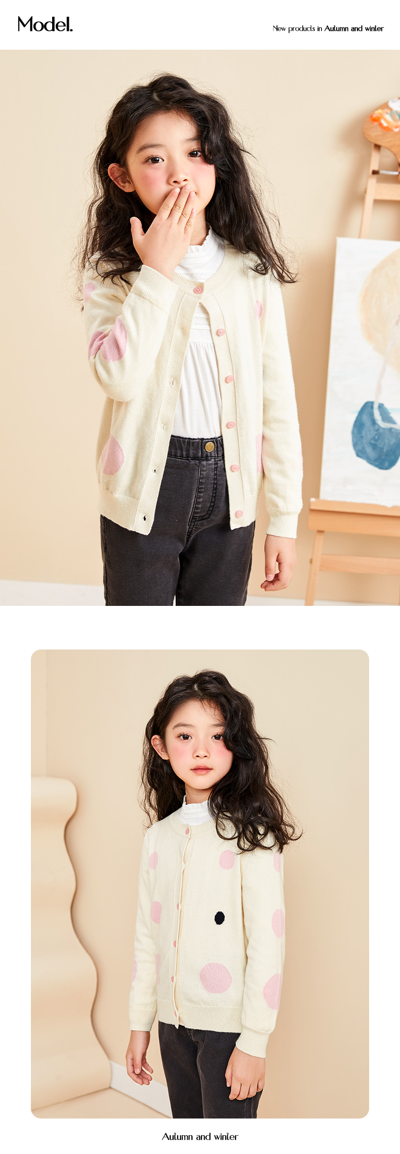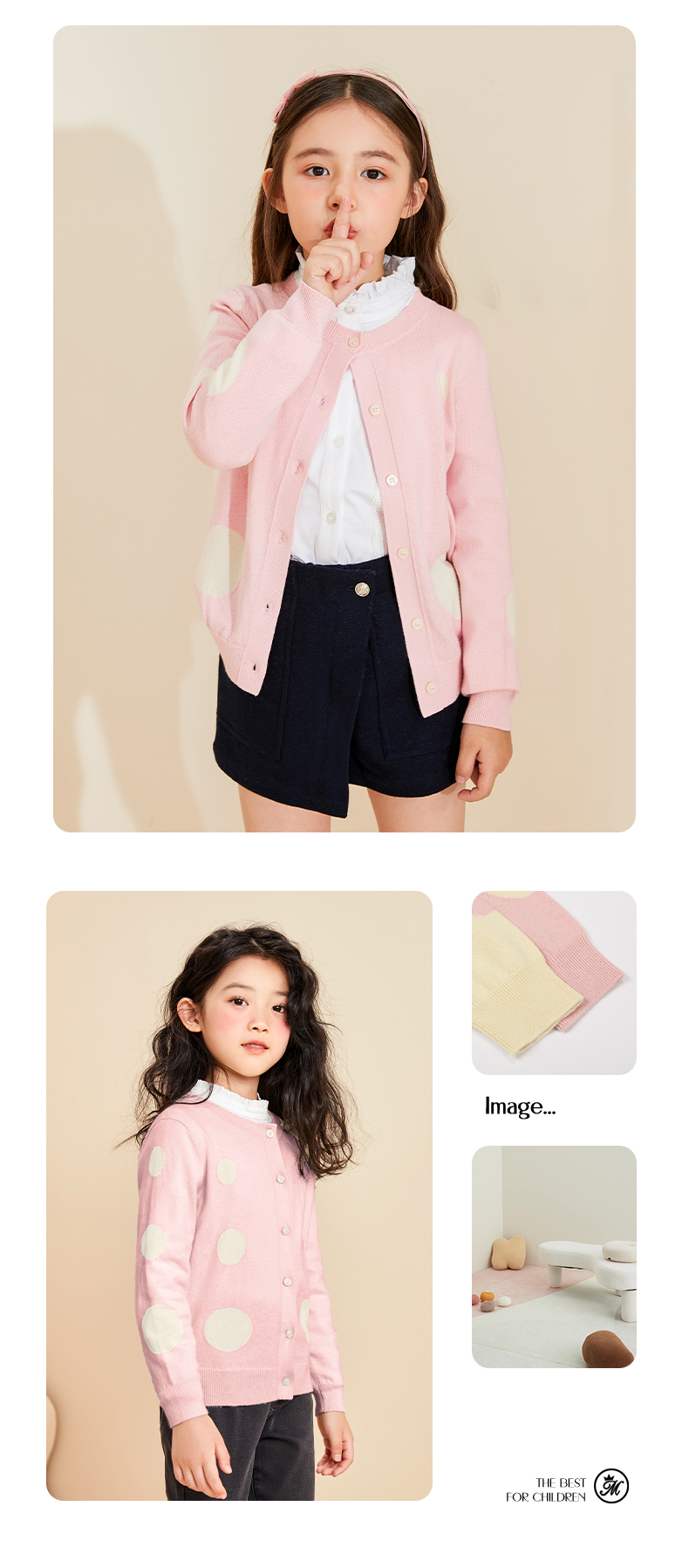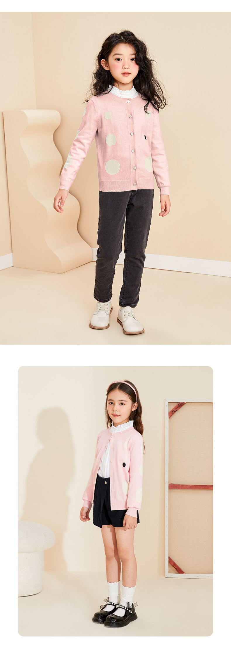 【薄款女童针织开始】22年秋季新品女宝长袖针织开衫圆点薄款棉羊绒小外套