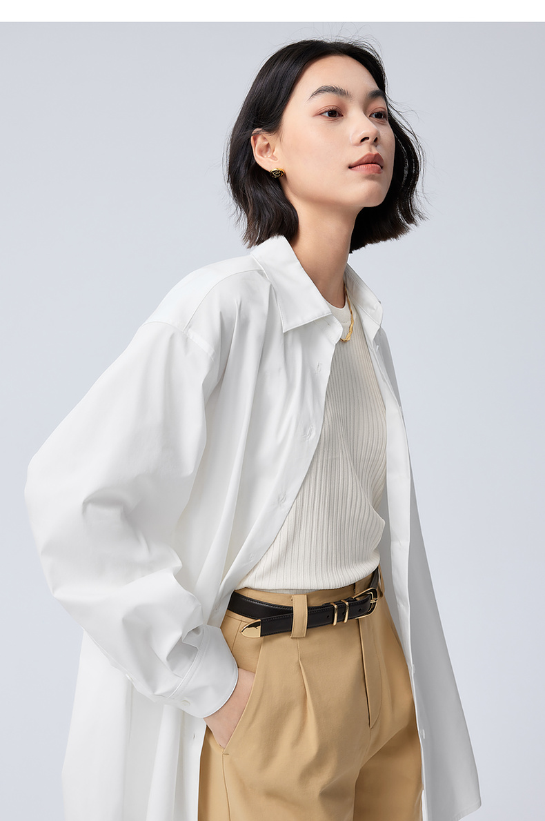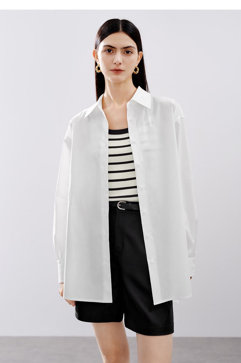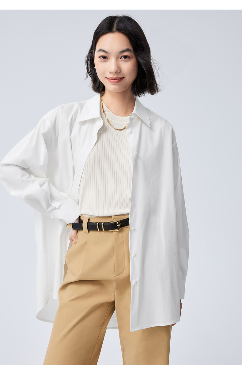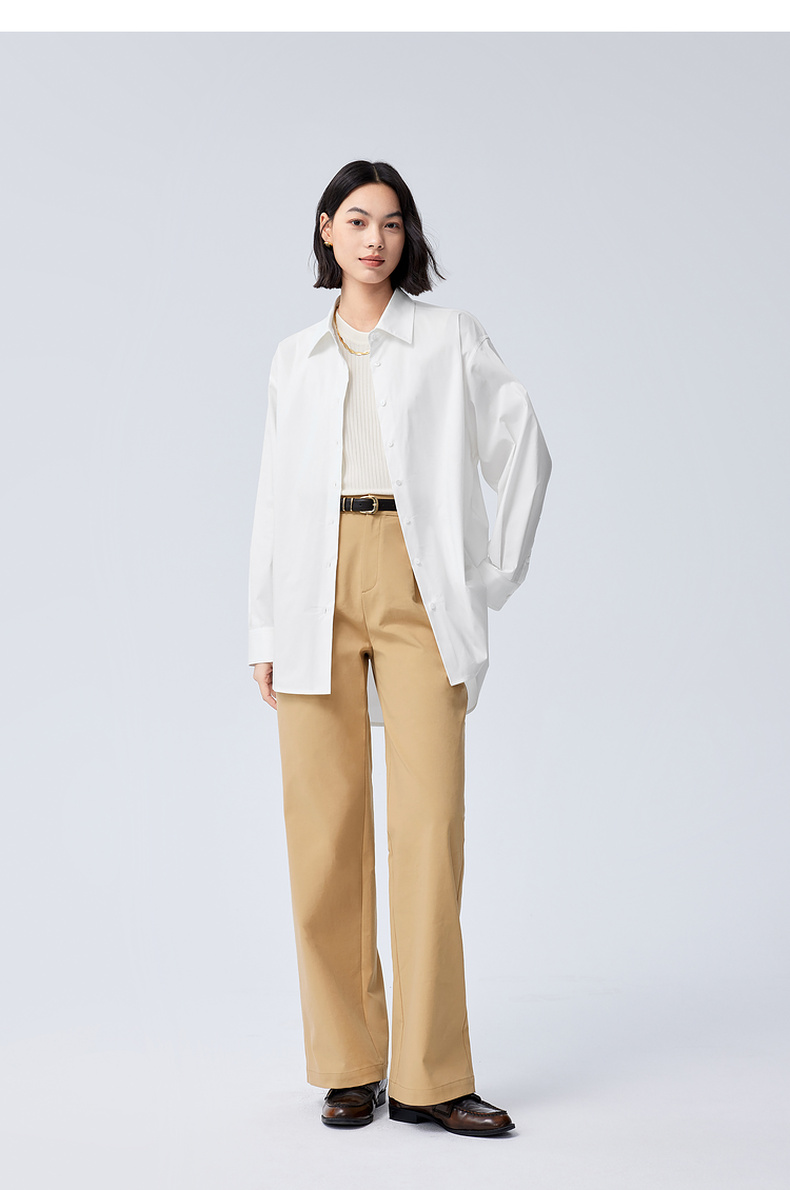【严选】伊芙丽男友风职场通勤廓形简约百搭衬衫女2024秋装新款舒适小上衣1F7923391