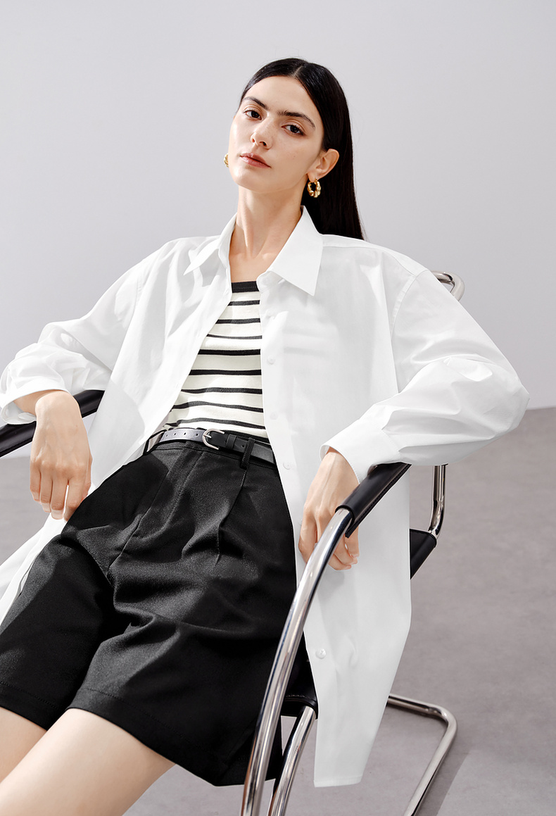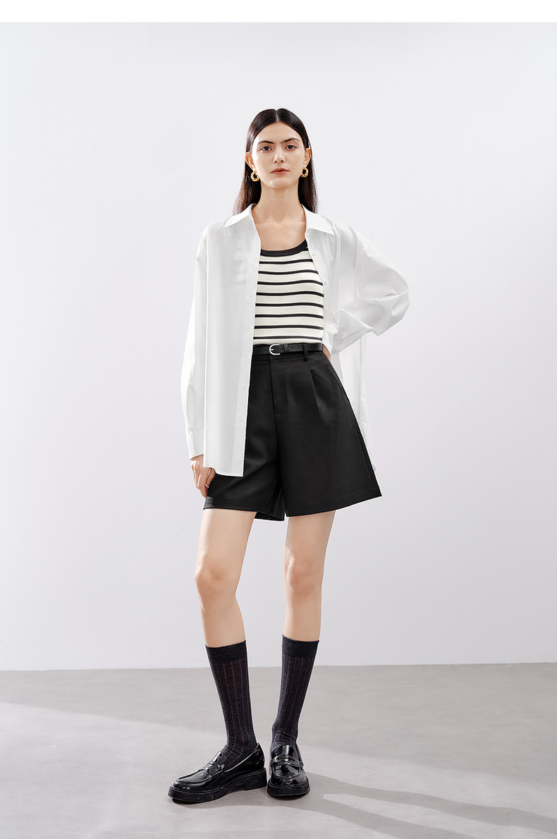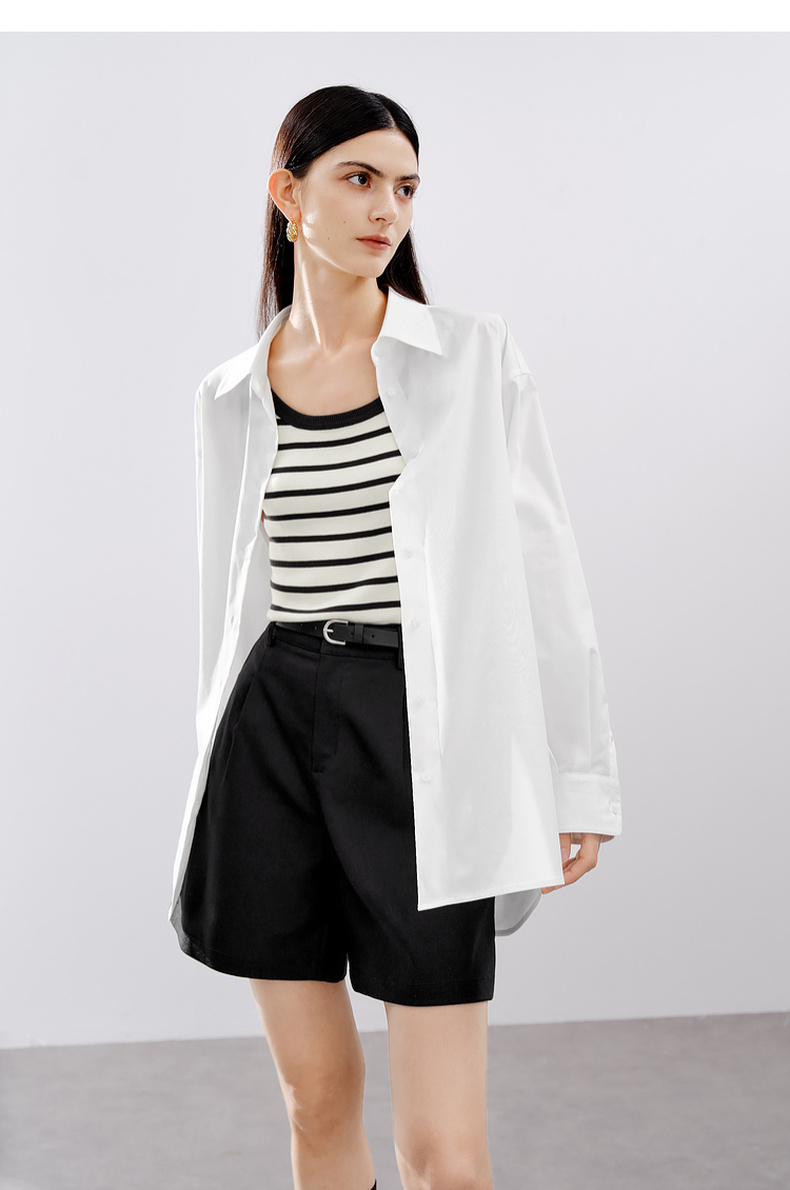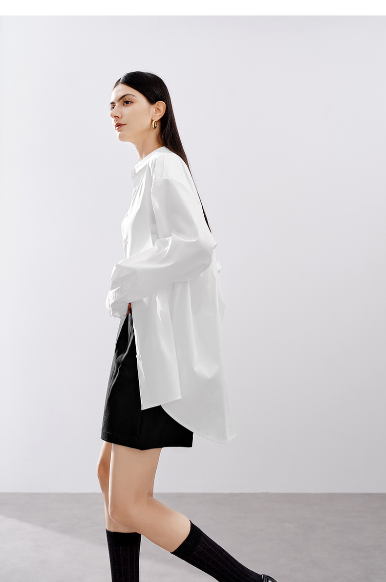 【严选】伊芙丽男友风职场通勤廓形简约百搭衬衫女2024秋装新款舒适小上衣1F7923391