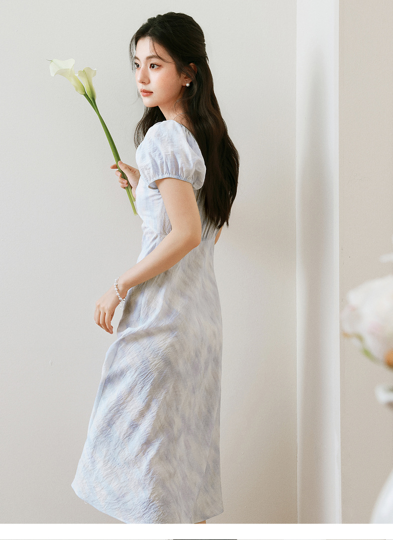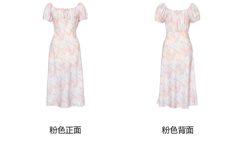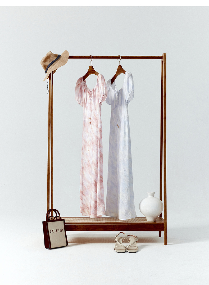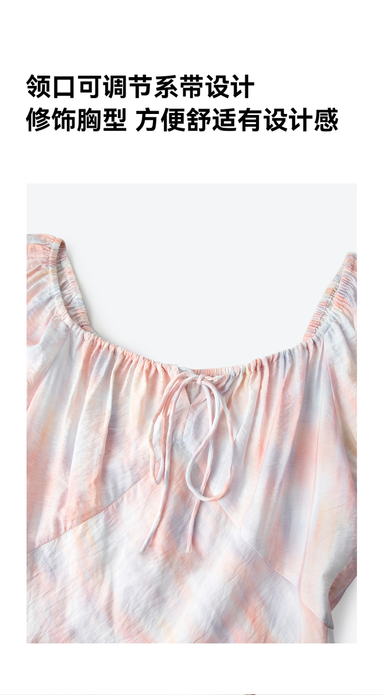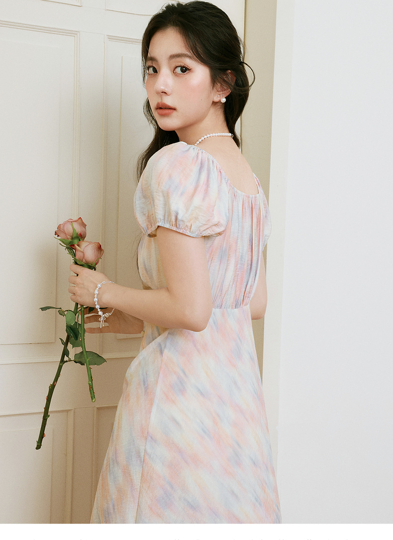 【严选】诗凡黎泡泡袖连衣裙2025春新款莫奈裙收腰欧若风度假绝美长裙7G3290721