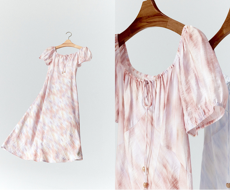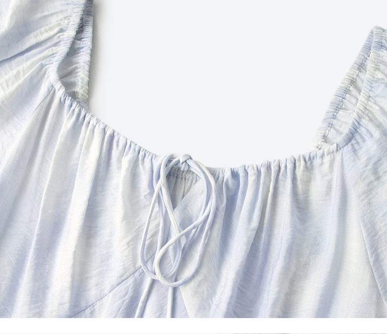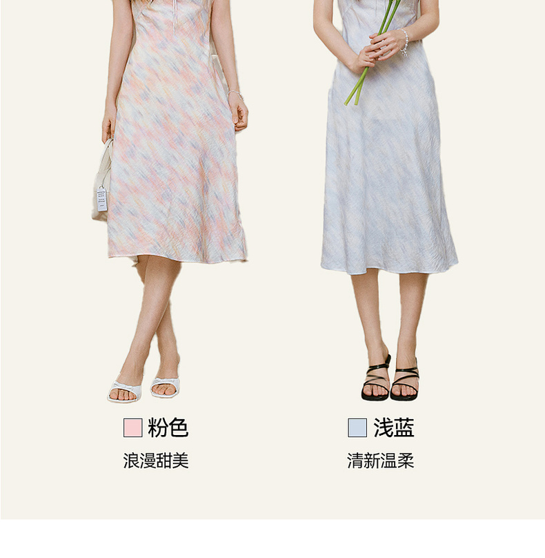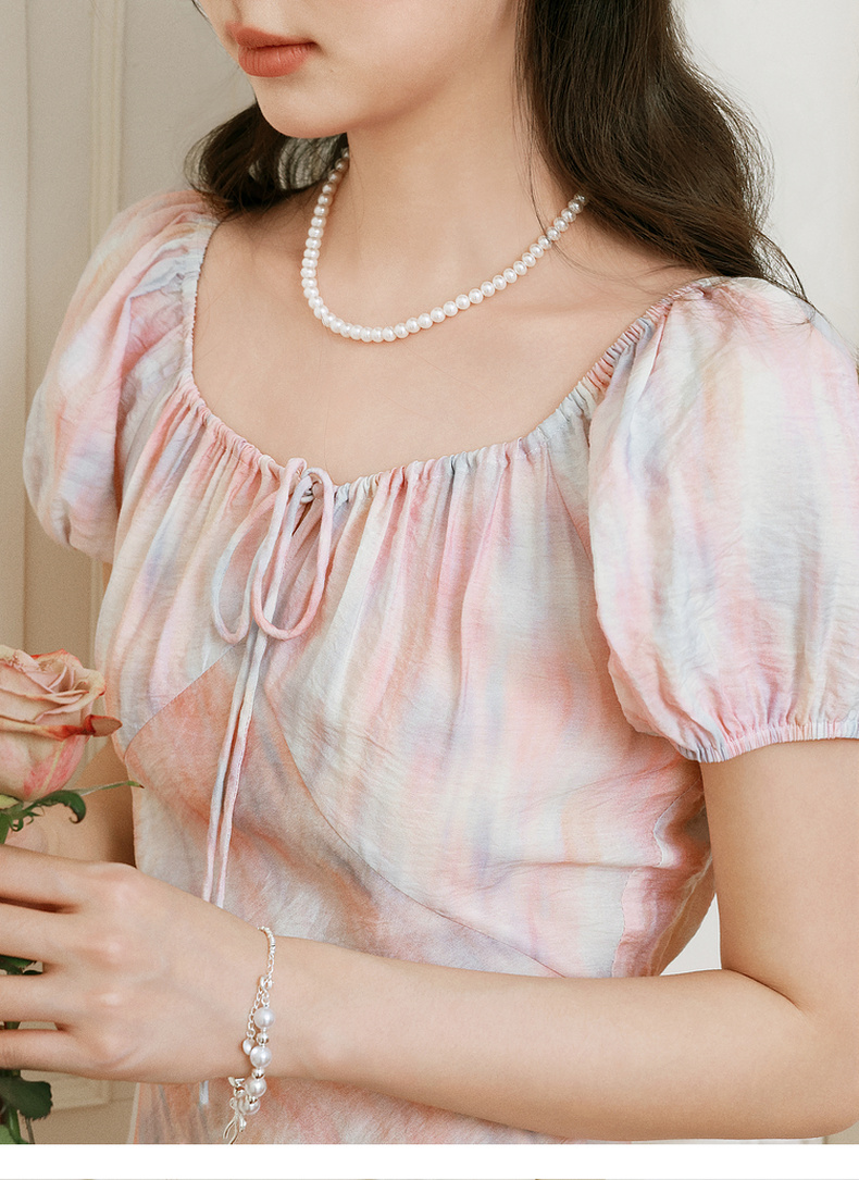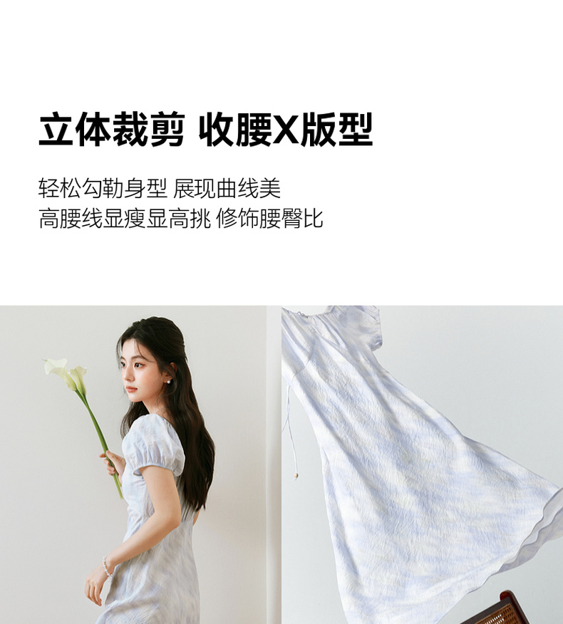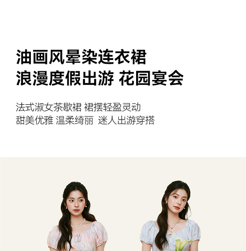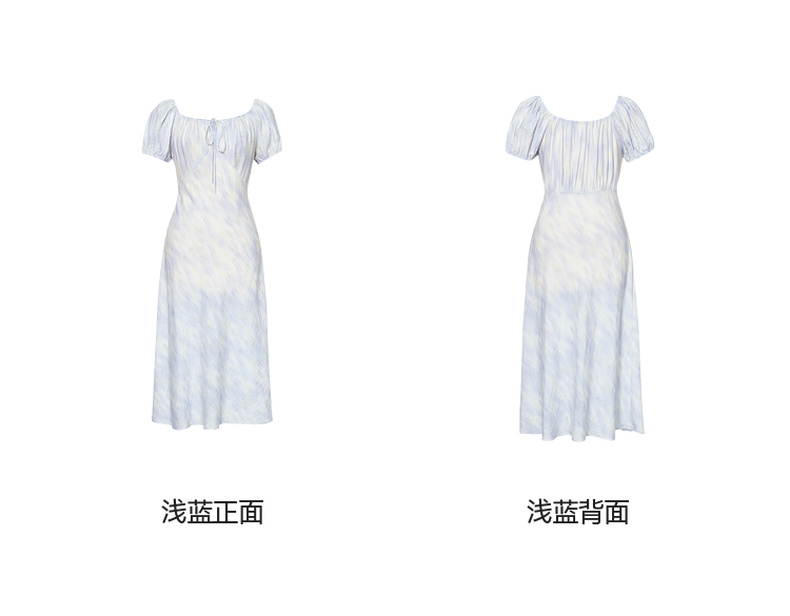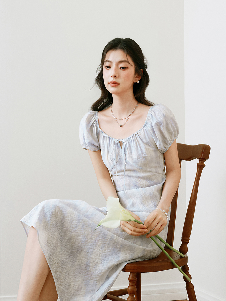 【严选】诗凡黎泡泡袖连衣裙2025春新款莫奈裙收腰欧若风度假绝美长裙7G3290721