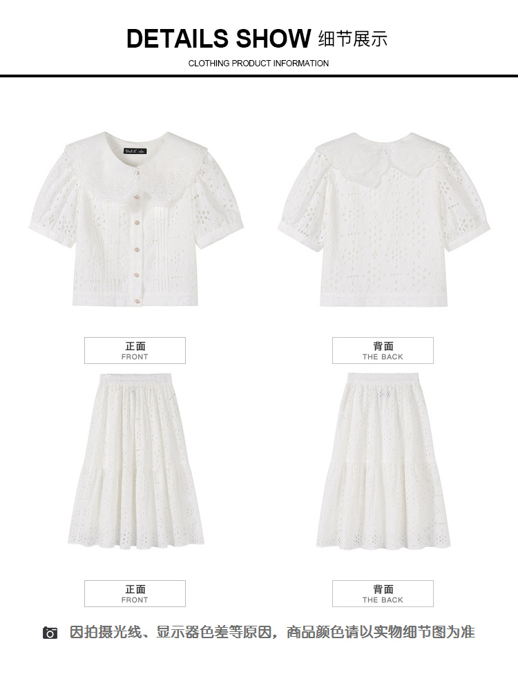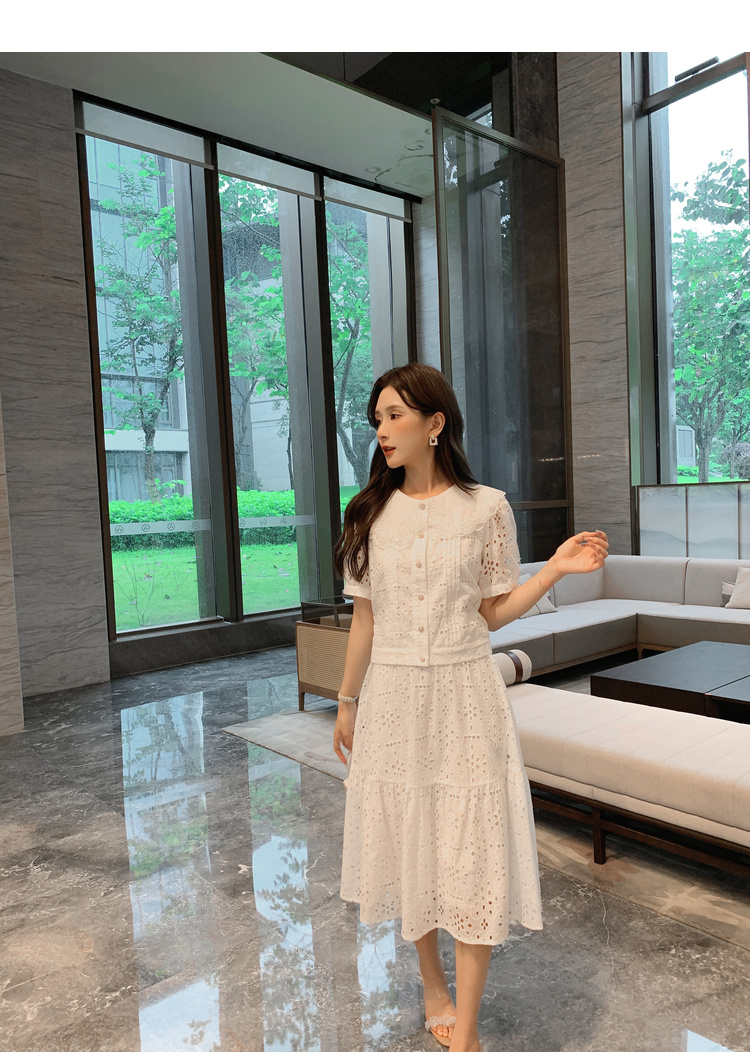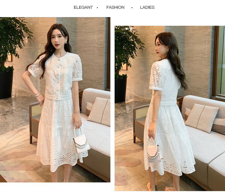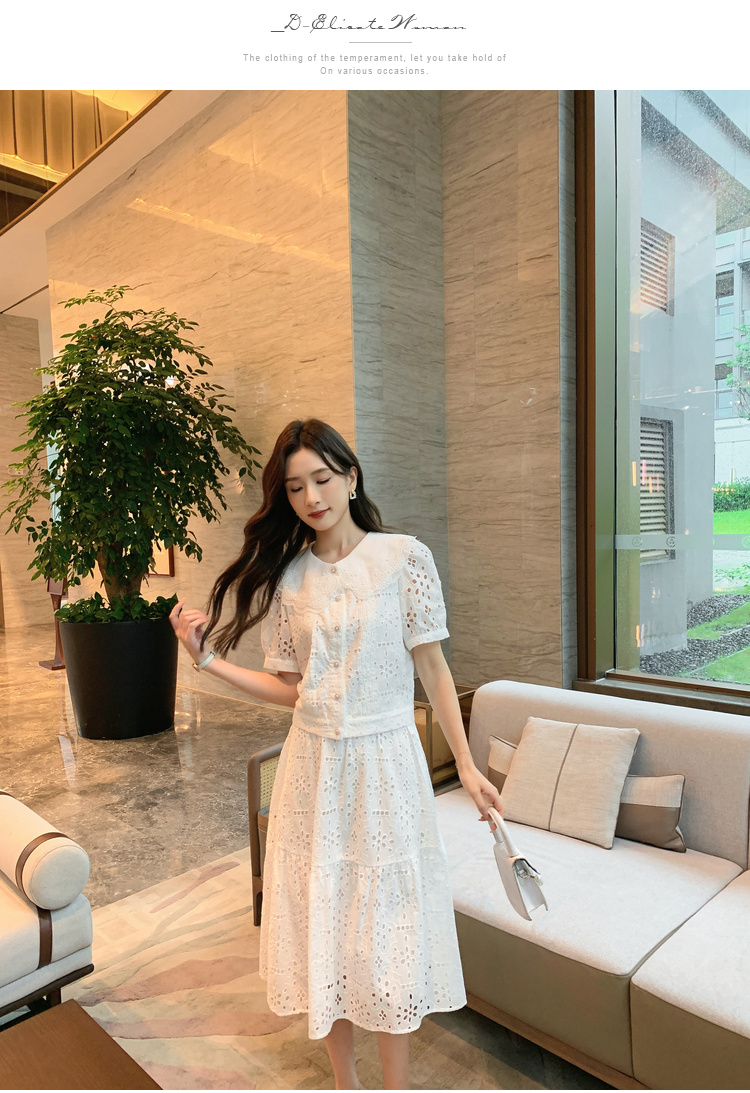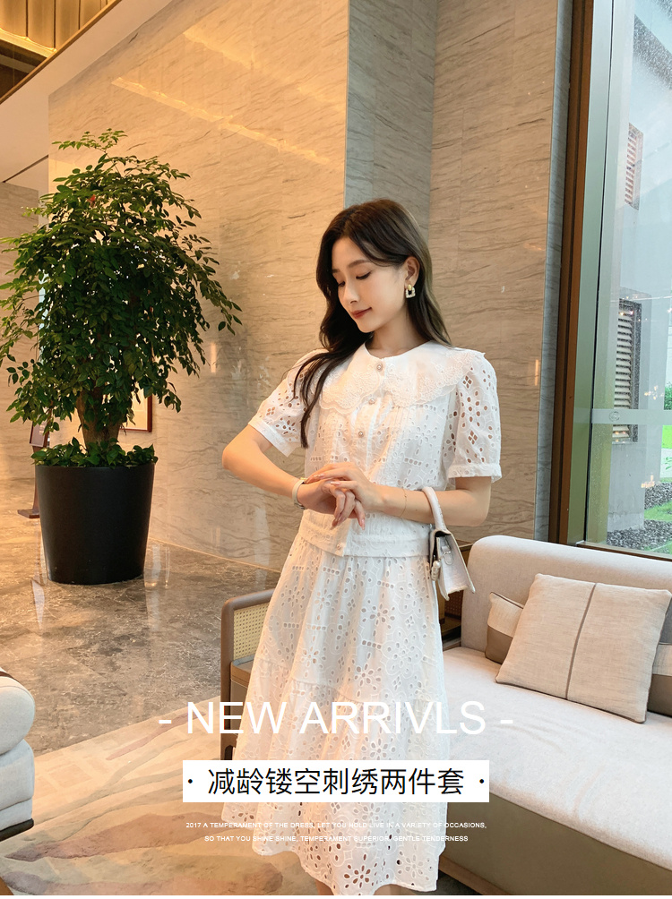 [奢姿轻奢系列]镂空刺绣两件套大码女装夏季新款胖妹妹减龄套装8942910018