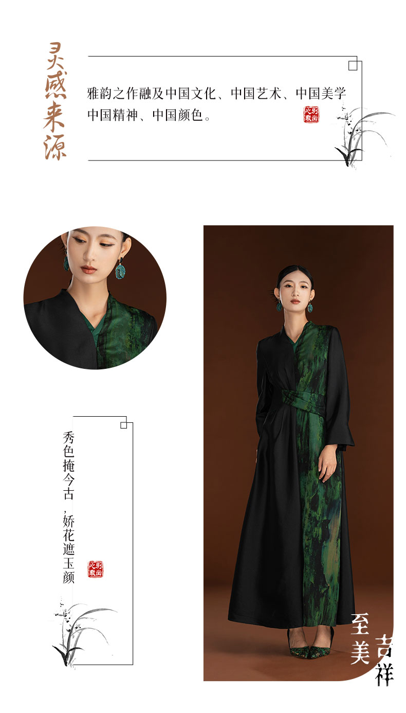 吉祥衣家新中式国风春夏新款桑蚕丝气质显瘦女芳洲杜若真丝连衣裙