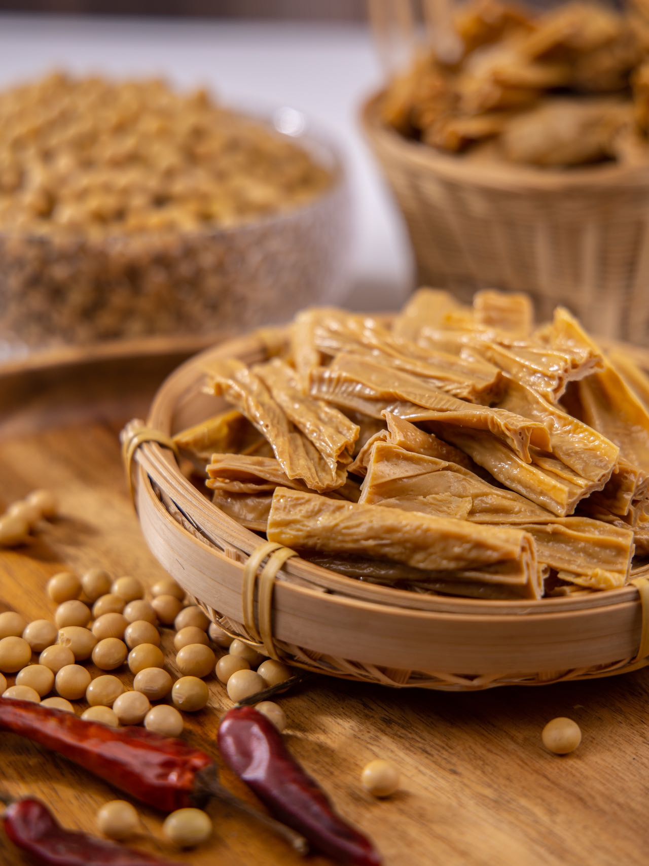 原汁原味,传统手作无添加,色泽金黄,油光发亮,豆香浓郁,清水泡发水质清澈,韧性适中,烹饪入口柔嫩爽口。