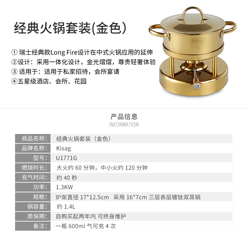 瑞士Kisag 金火锅充气移动小火锅炉