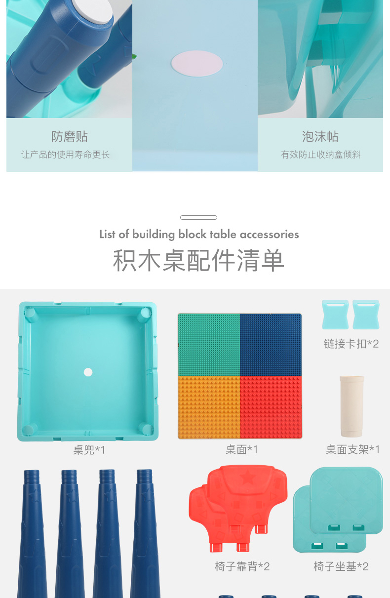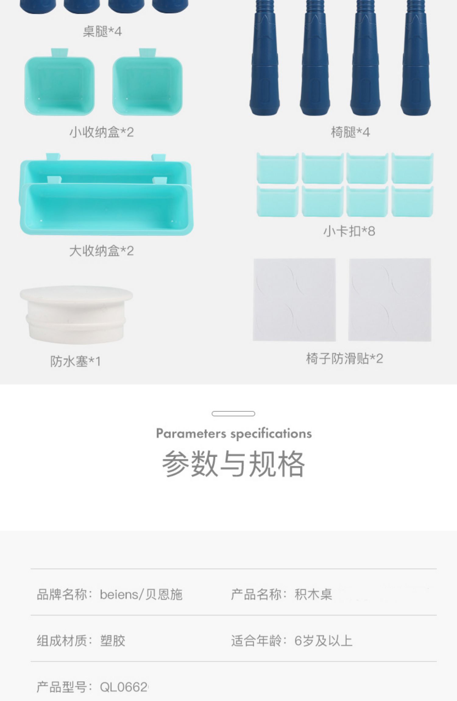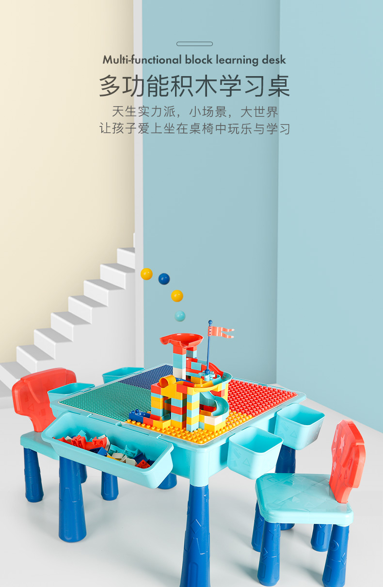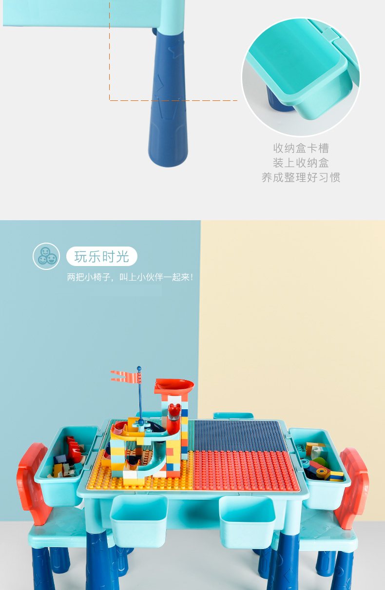 贝恩施儿童积木桌子多功能男女孩子1-2-3-6岁8大颗粒拼装玩具
