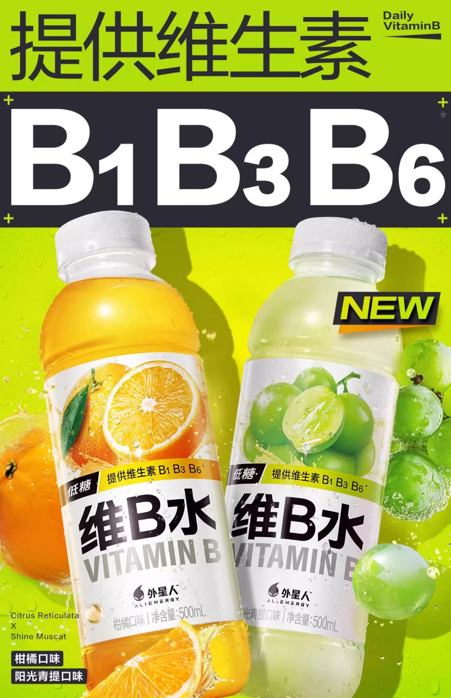 元气维B水500ml(柑橘味/阳光青提味)