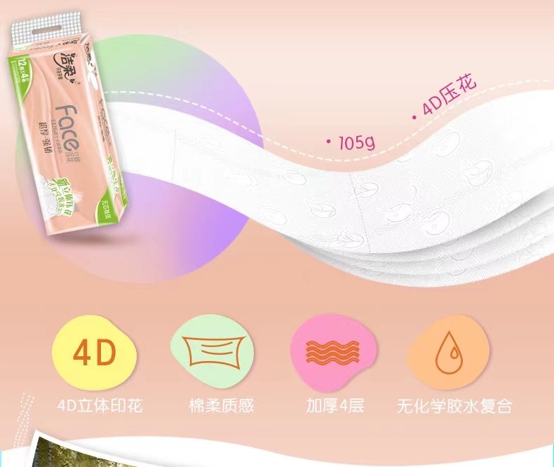洁柔卷纸Face卫生纸 4层105g 12卷