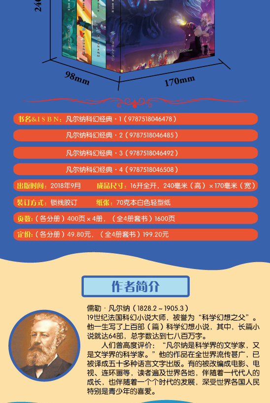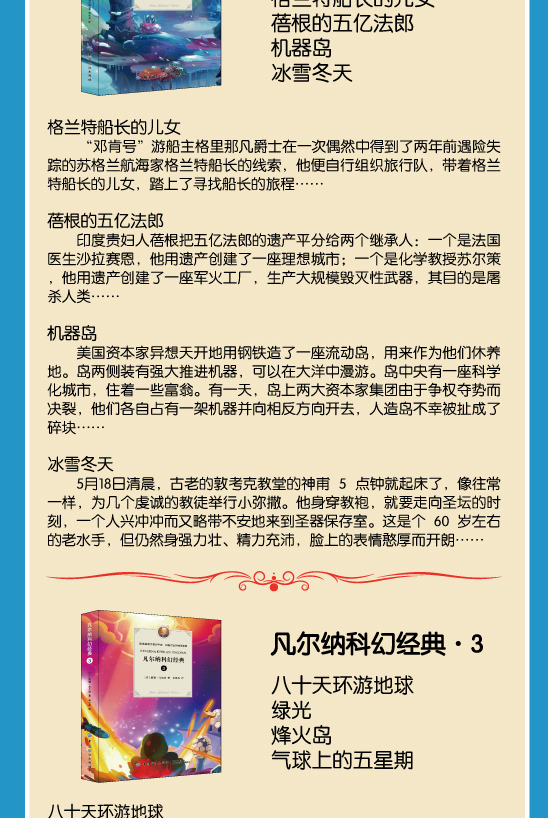 凡尔纳科幻经典 ·1儒勒凡尔纳科幻小说全集全套 格兰特船长的儿女+海底两万里+神秘岛+地心游记+八十天环游地球 儿童文学课外书籍