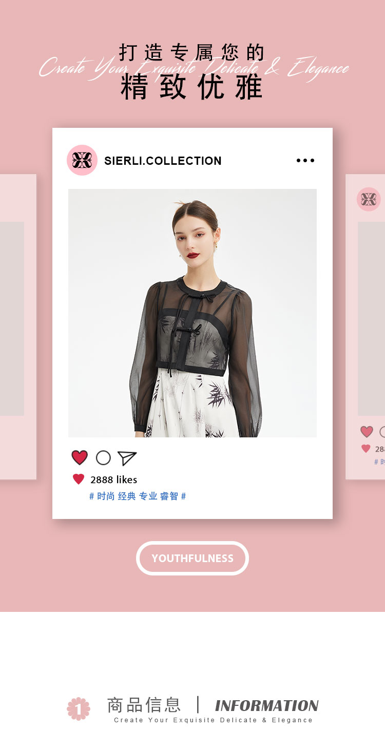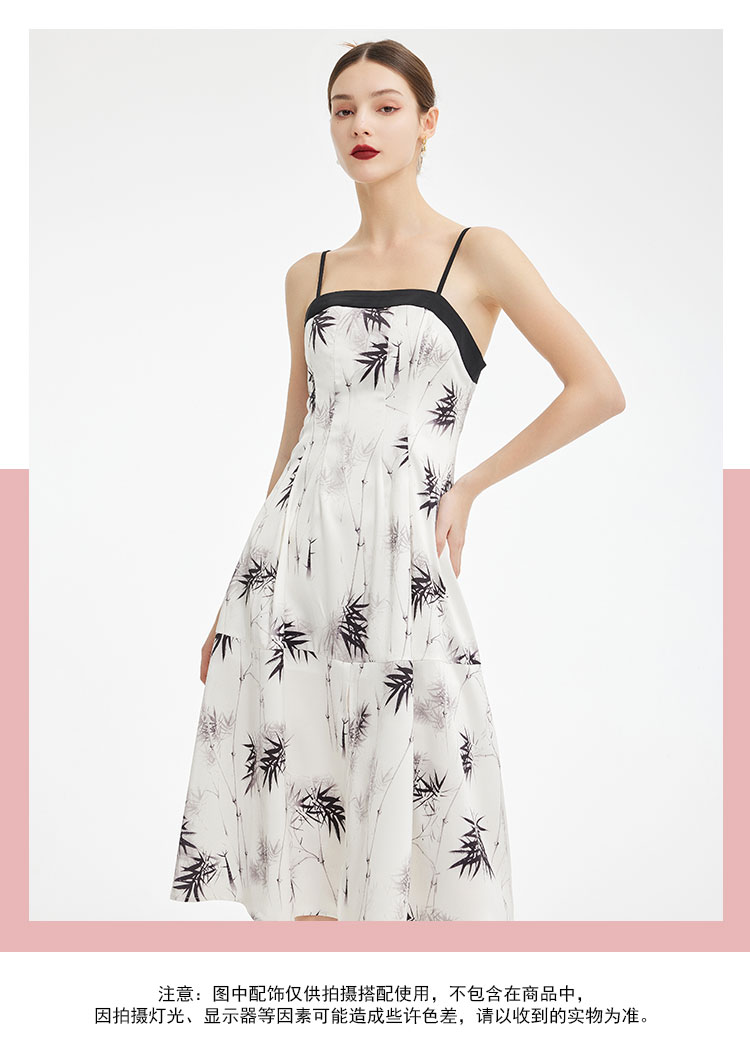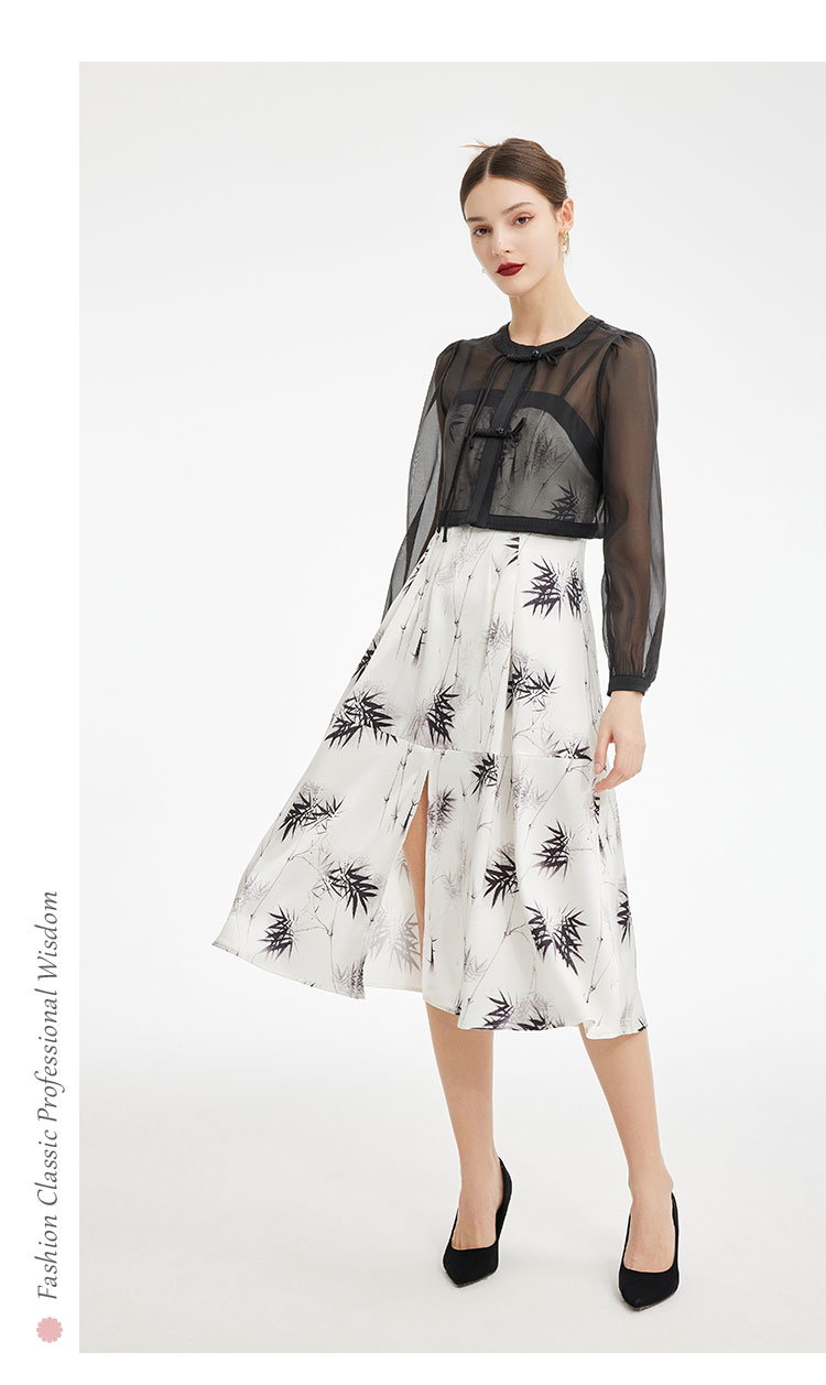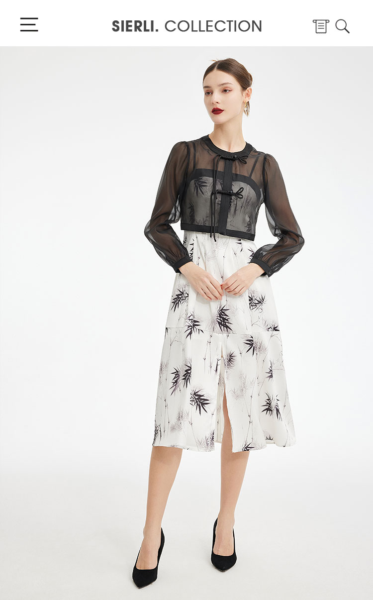 PF854斯尔丽2024新款国风系列薄纱箱型外套搭配吊带印花连衣裙两件套装
