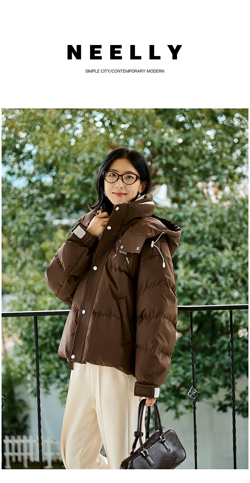 NEELLY纳俪商场同款冬季新款白鸭绒连帽羽绒服外套女时尚保暖外套N24104L06602