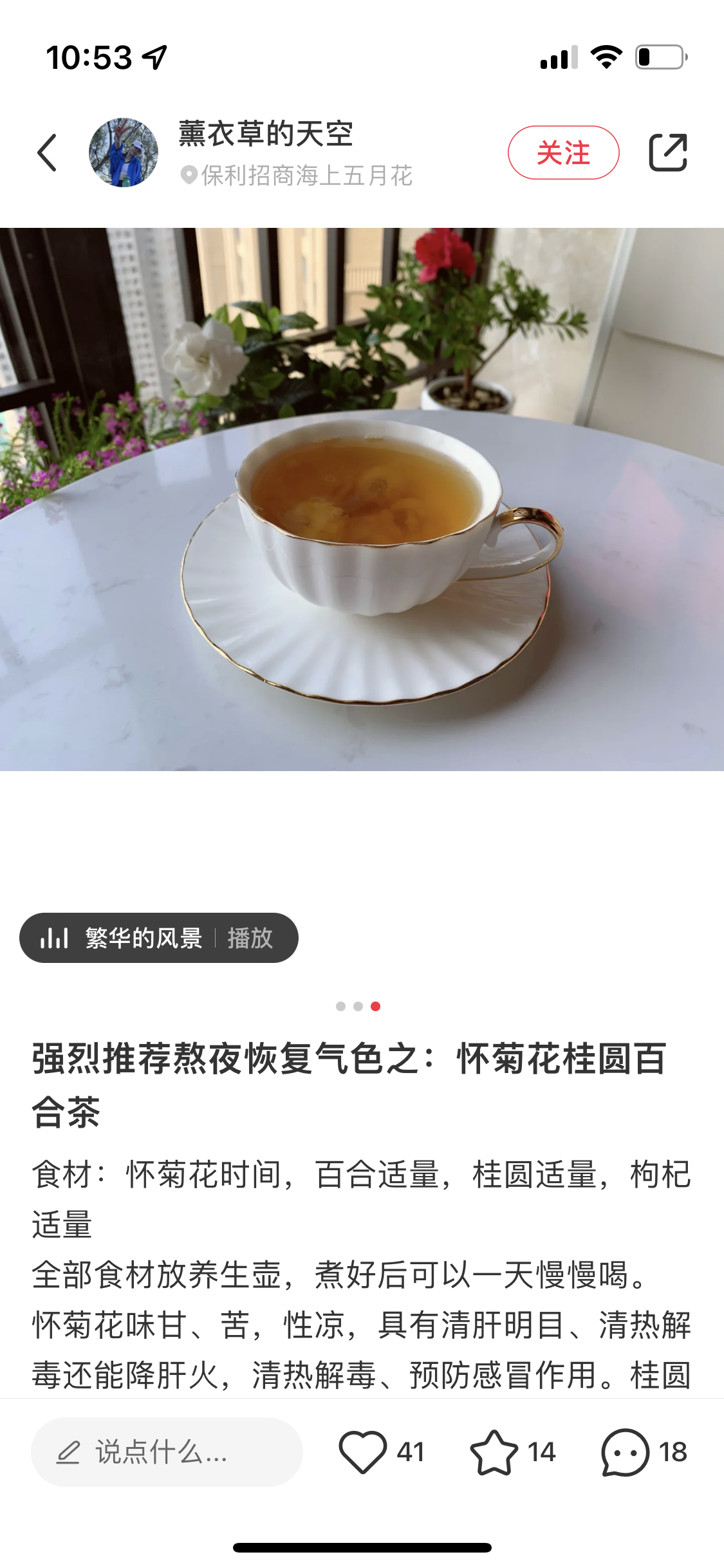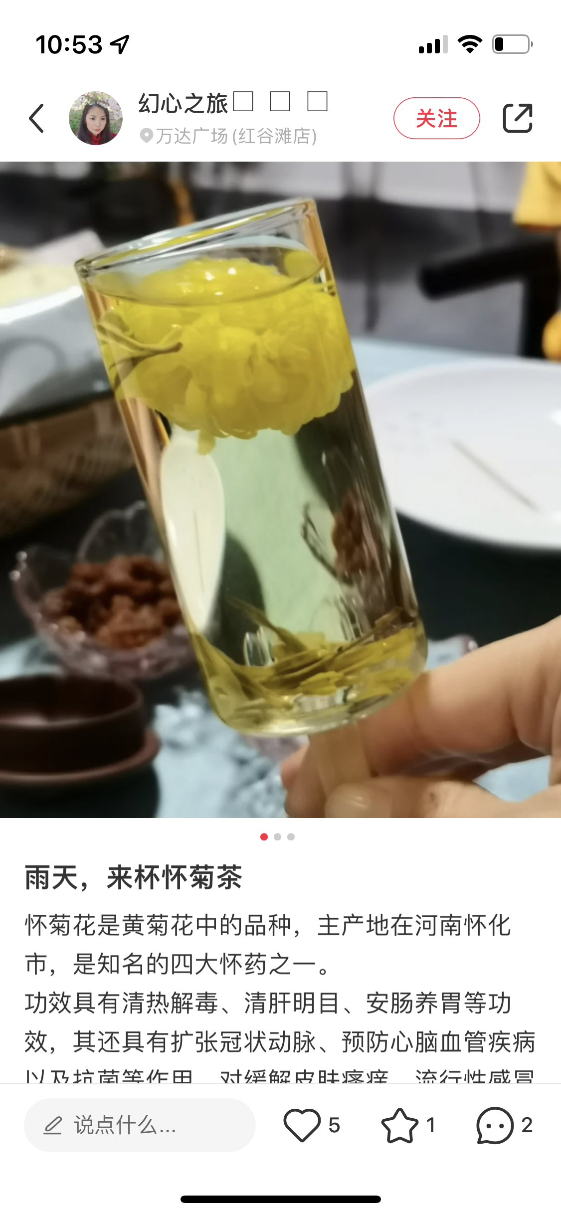 推荐的这款怀菊花,品质非常的好,打开就可以闻到菊花的清香,干干净净的品相,泡出来的茶也是很漂亮,像艺术品一样,养眼。每一朵都很饱满,色泽金黄,清甜爽口,一两朵就可以续泡好几杯哦,喝一天没问题!喝完之后还可以把花朵吃掉,是可以食用的哈,嚼在嘴里,花香溢满整个口腔,非常舒爽,建议长期喝酒抽烟的可以多吃点哦~