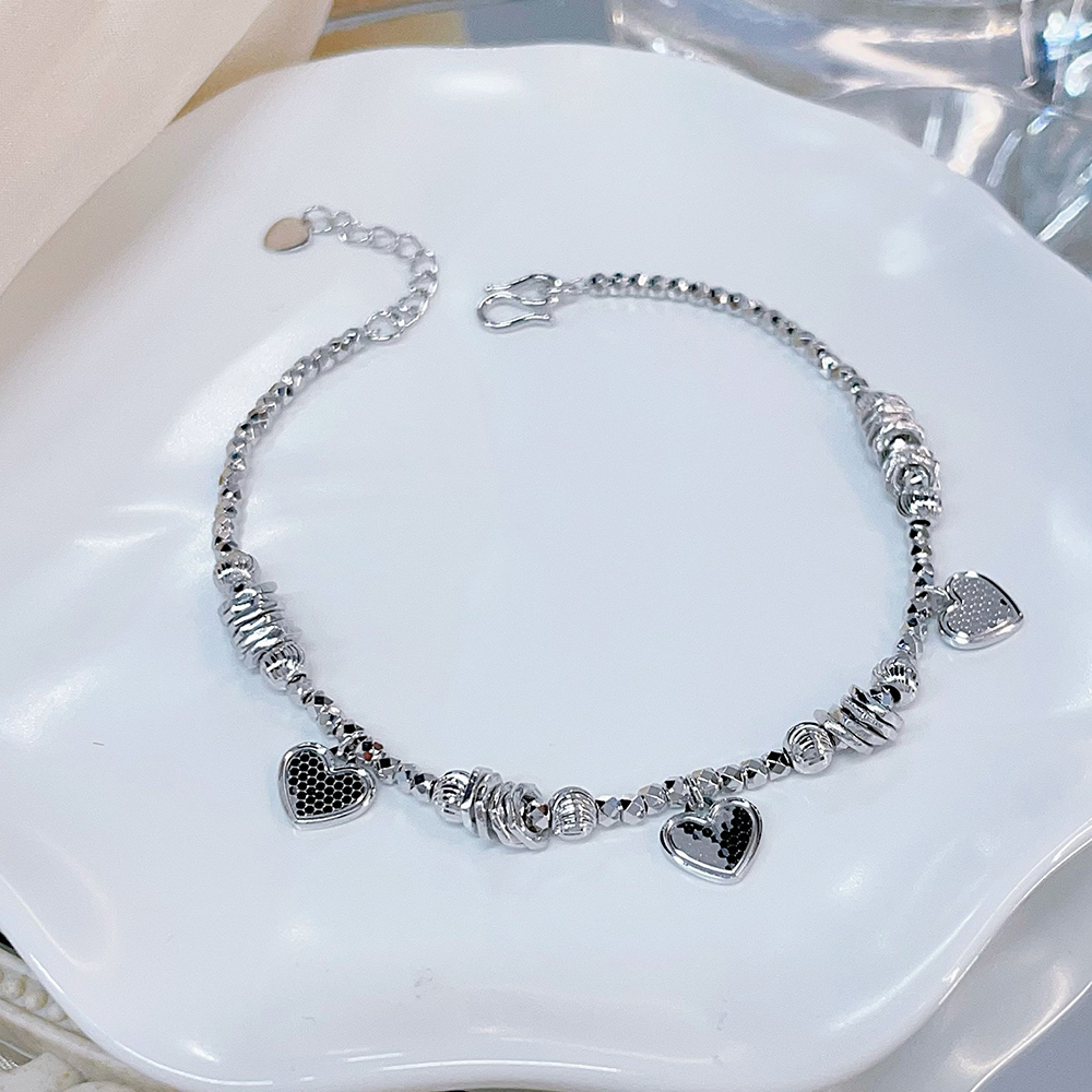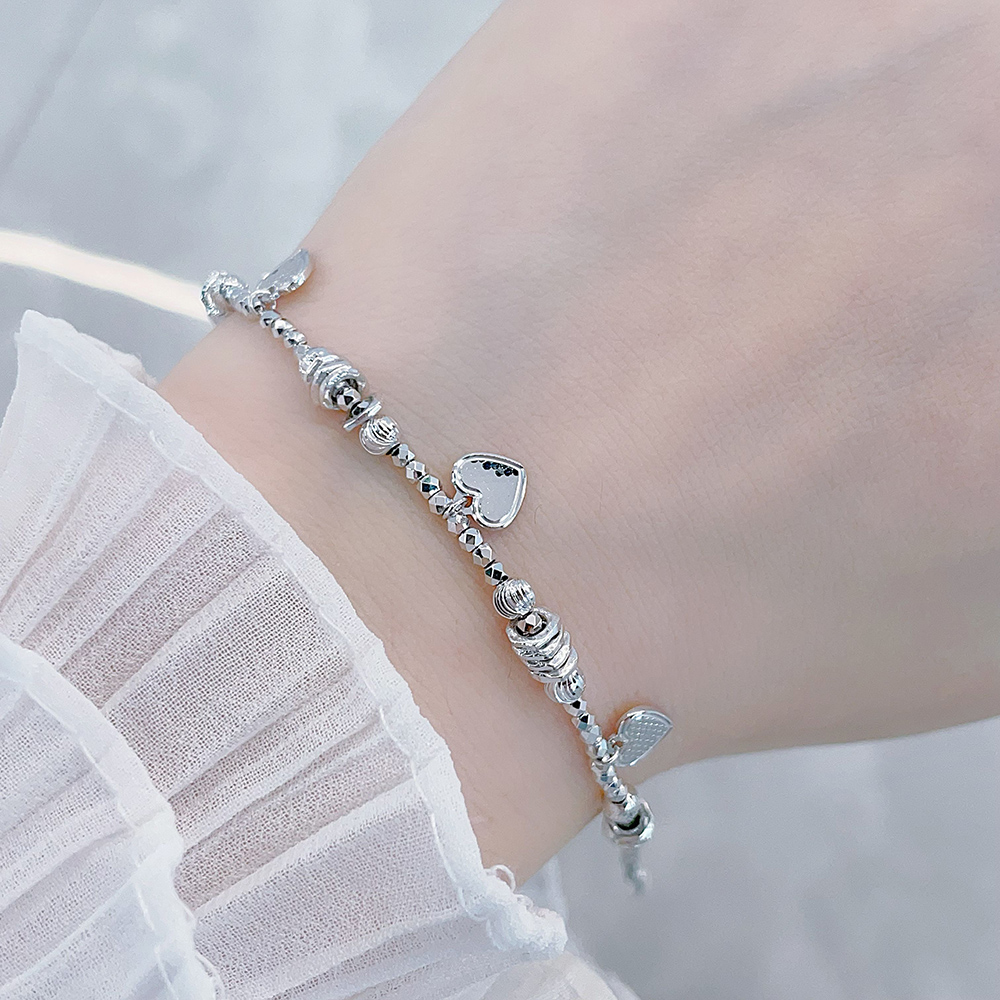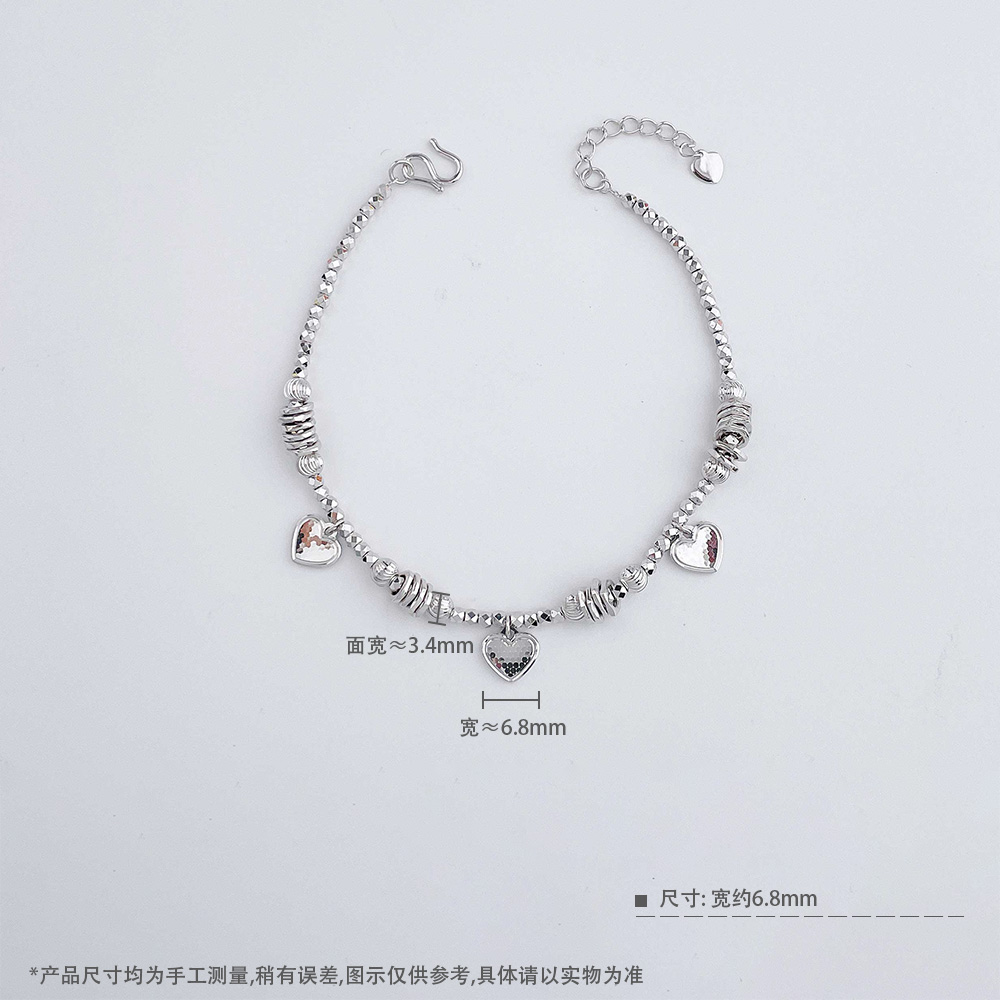 【限时8.8折】【线上铂金馆】PT950 #520快乐 #怦然心动 铂金可调节转运珠间珠爱心心形挂饰手链(爱心盘缠实心其余空心)(PTSL00059)预售产品下单后不退款不退货不换货不补差价)