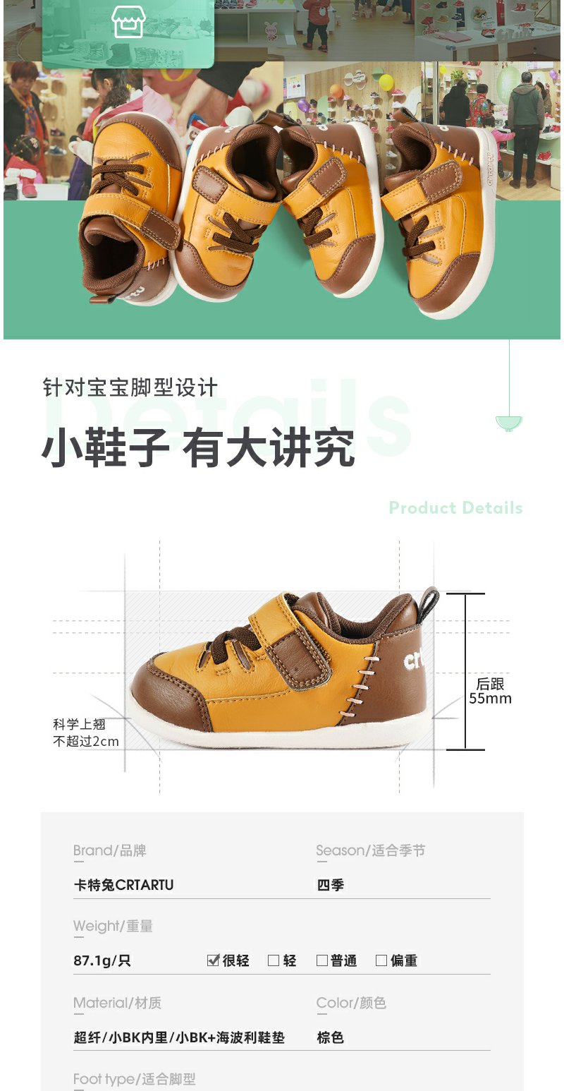 卡特兔四季款宝宝板鞋 棕 一段/二段