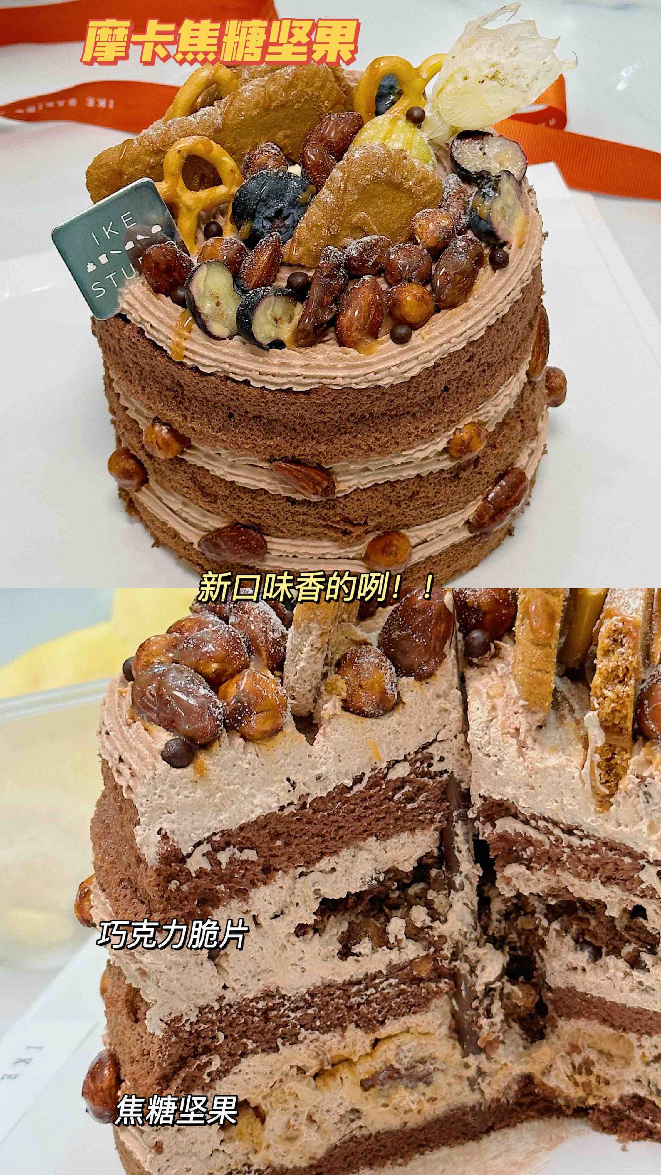 焦糖坚果裸蛋糕(夹心内含坚果!老人、小孩及过敏人士,请谨慎食用!)