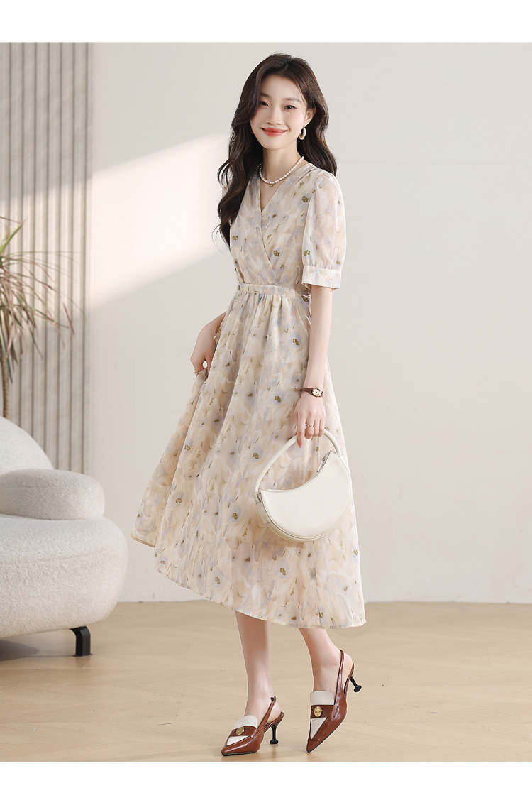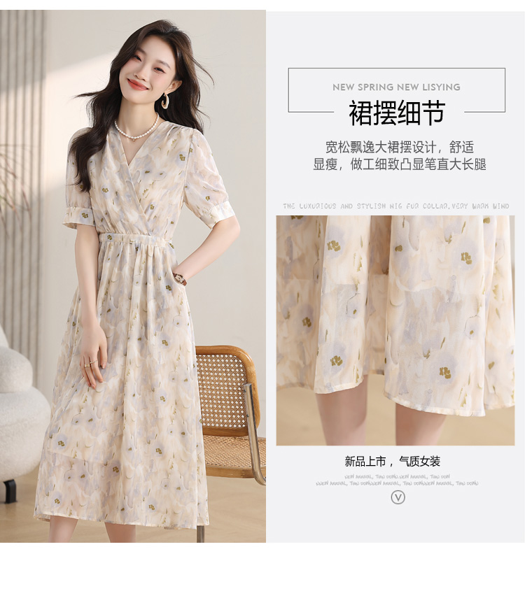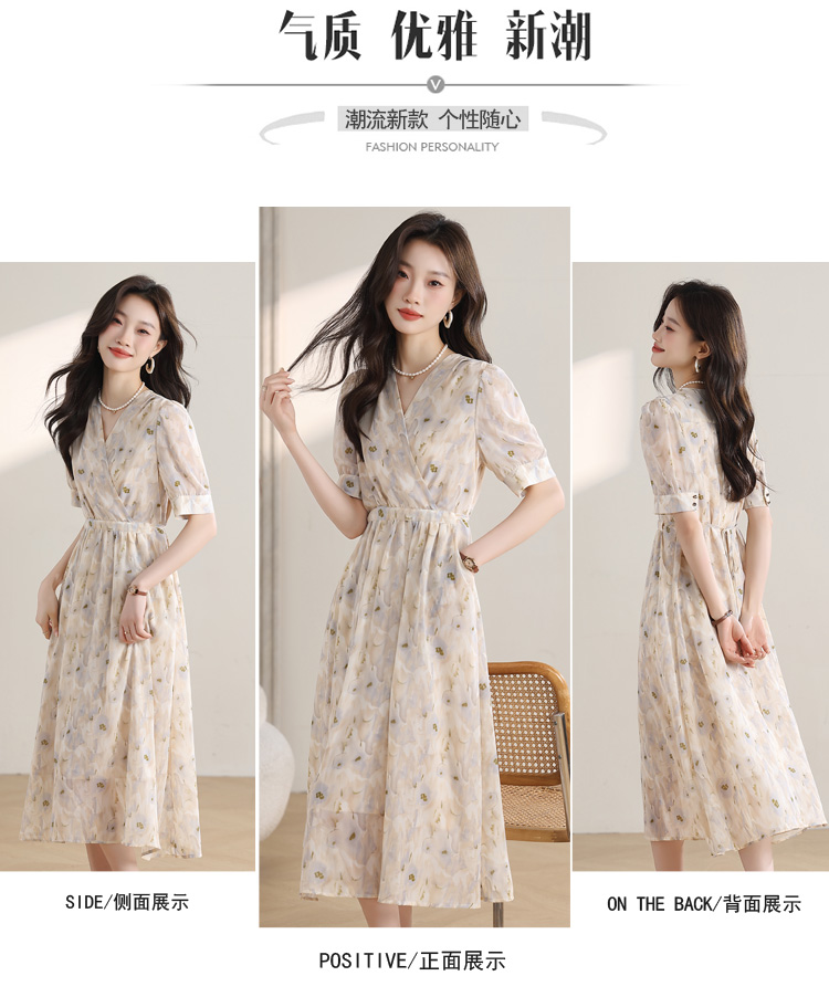 【哥弟同厂!绝美晕染连衣裙】显瘦版型设计 气质时尚的风格 穿出动人的S型曲线身材!性感气质V领 视觉拉长脖颈线条 领口设置暗扣安全不怕走光 后腰蝴蝶结绑带 束腰收身 凸显高挑迷人身材