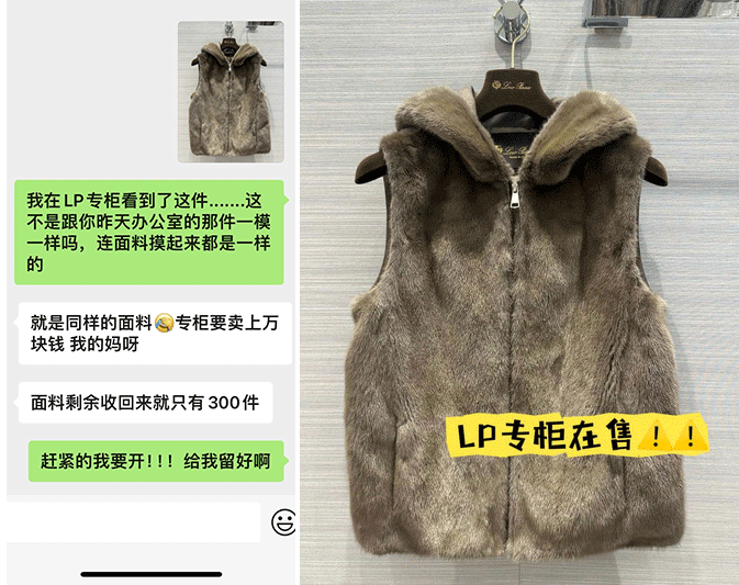 我们甚至拿一件真皮草和它做对比,质感、光泽度,一点都不输真皮草!