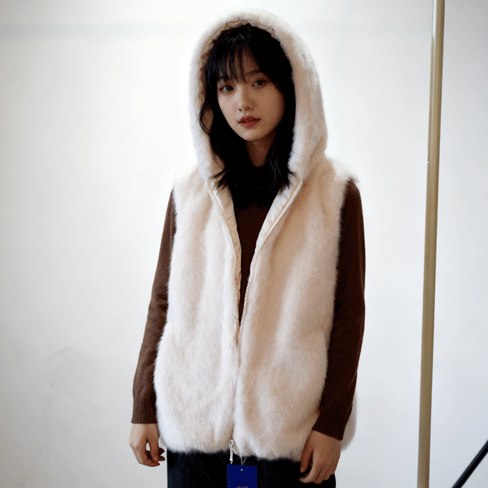 连帽欧貂绒马甲
