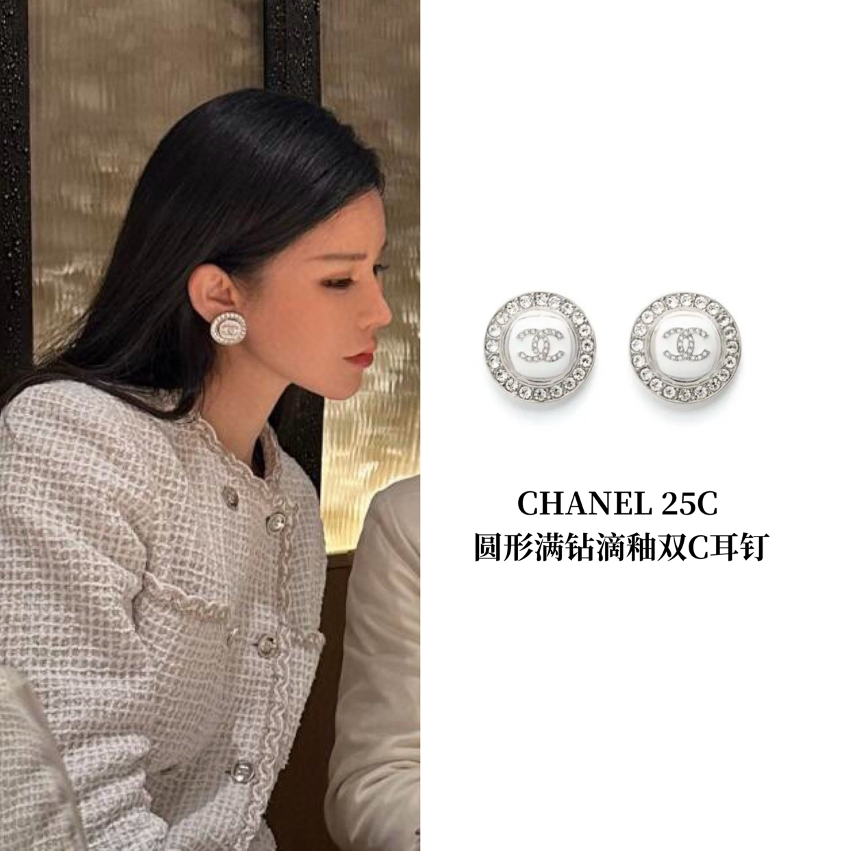 CH-J 25C 圆形满钻滴釉双C耳钉