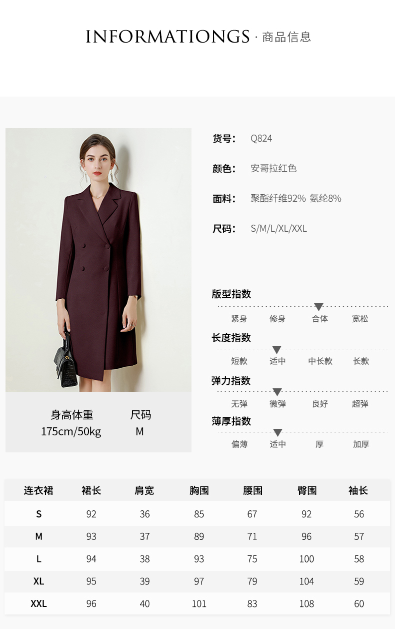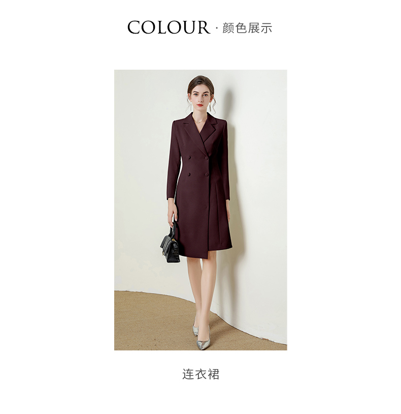 IWY/安哥拉红西装连衣裙长袖修身气质高级显瘦正式场合商务工作服Q824
