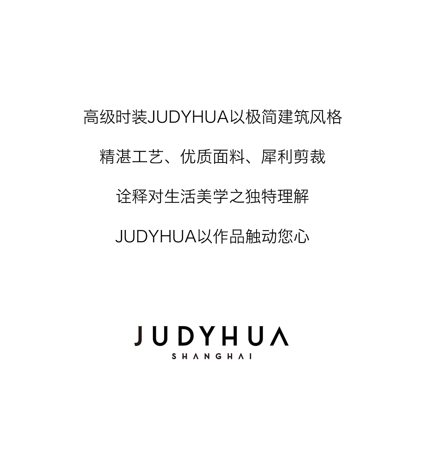 - 以极简建筑风格,诠释对生活美学之独特理解,JUDYHUA以作品触动您心。更多新款上架,请亲临JUDYHUA STUDIO试穿选购。预约电话:021-62663449,18201881913