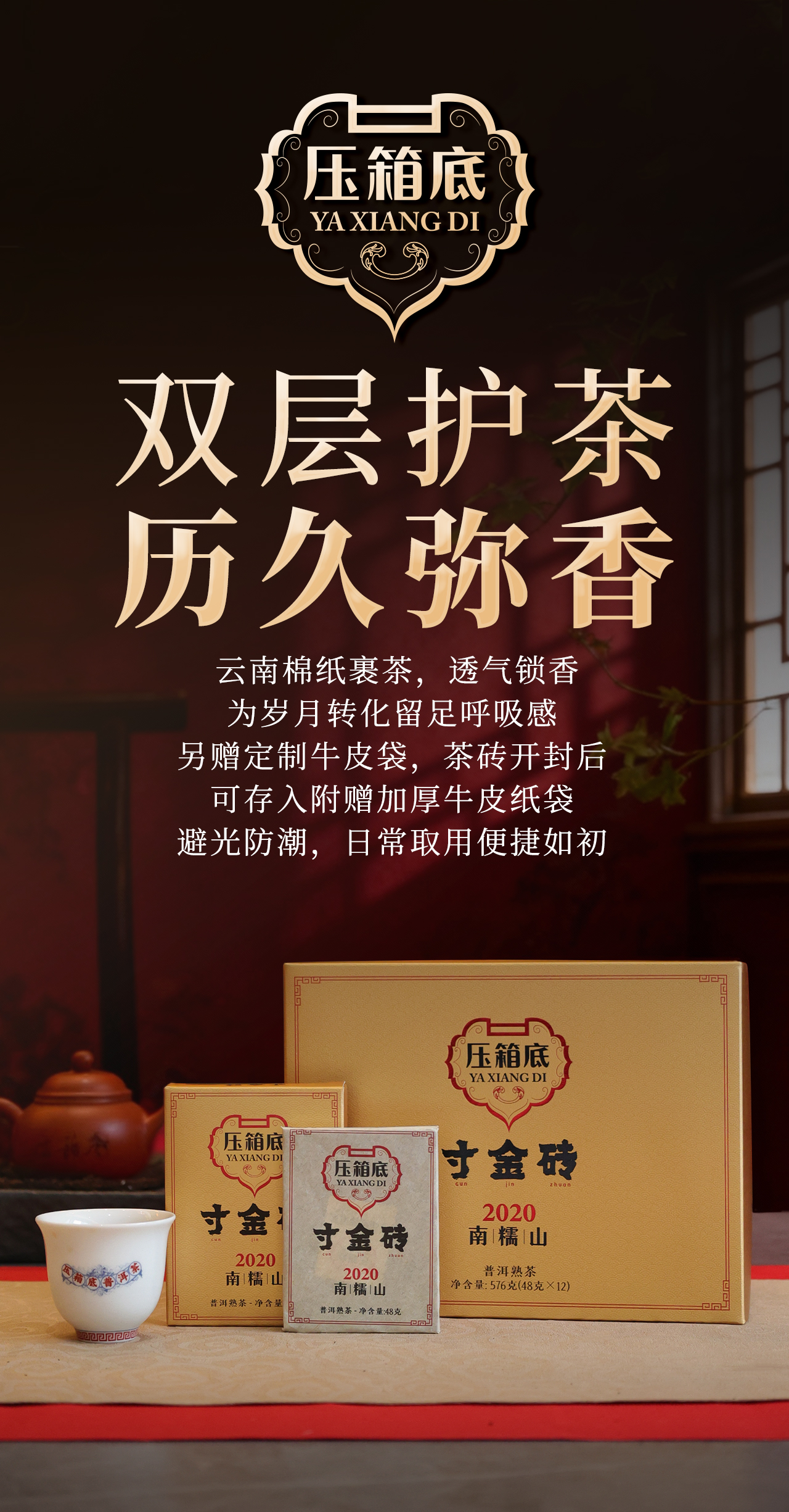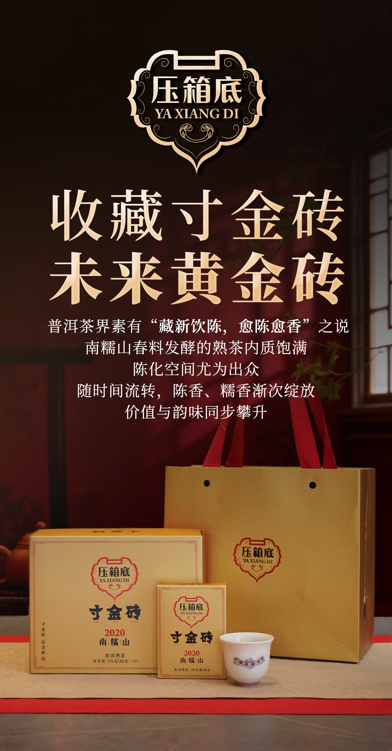 压箱底 寸金砖2020年南糯山 普洱熟茶 砖茶 576克/12砖/提 4提/件
